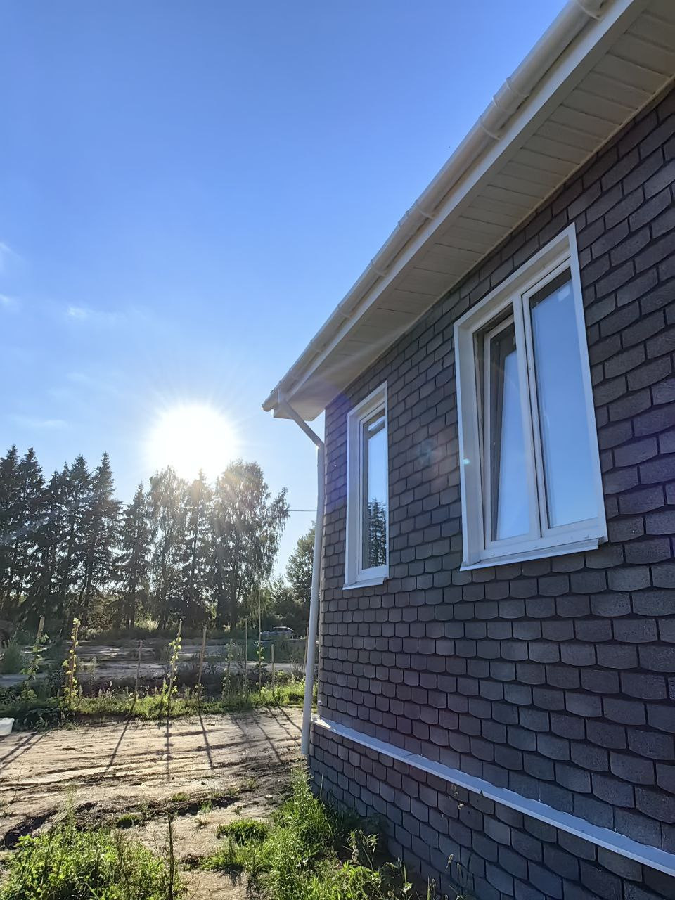 - Стены внутри - гипсокартон, снаружи - имитация кирпича, гибкая черепица шинглас.