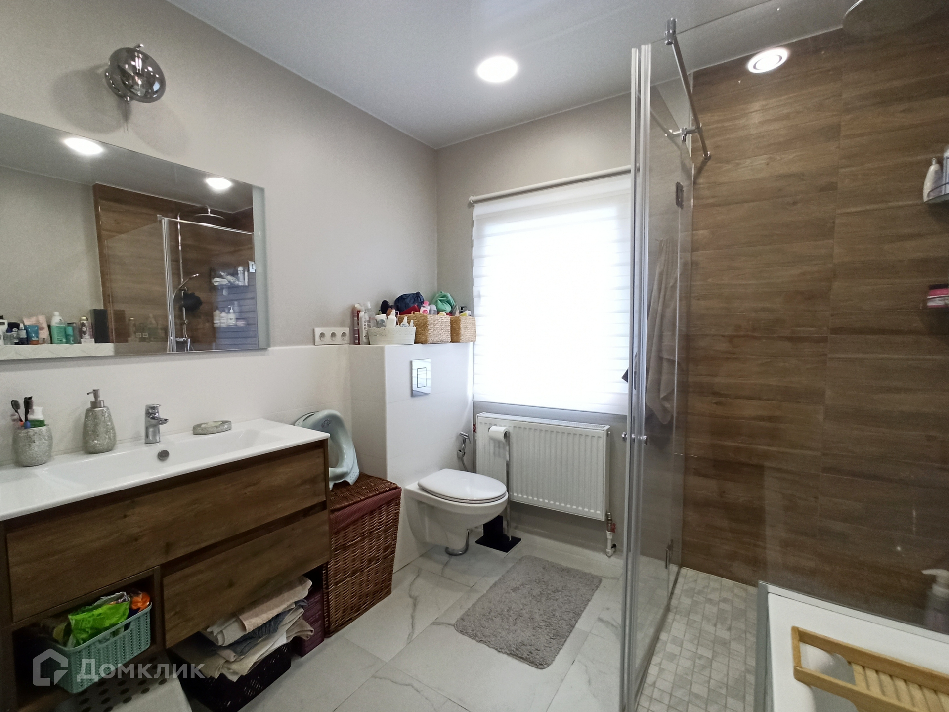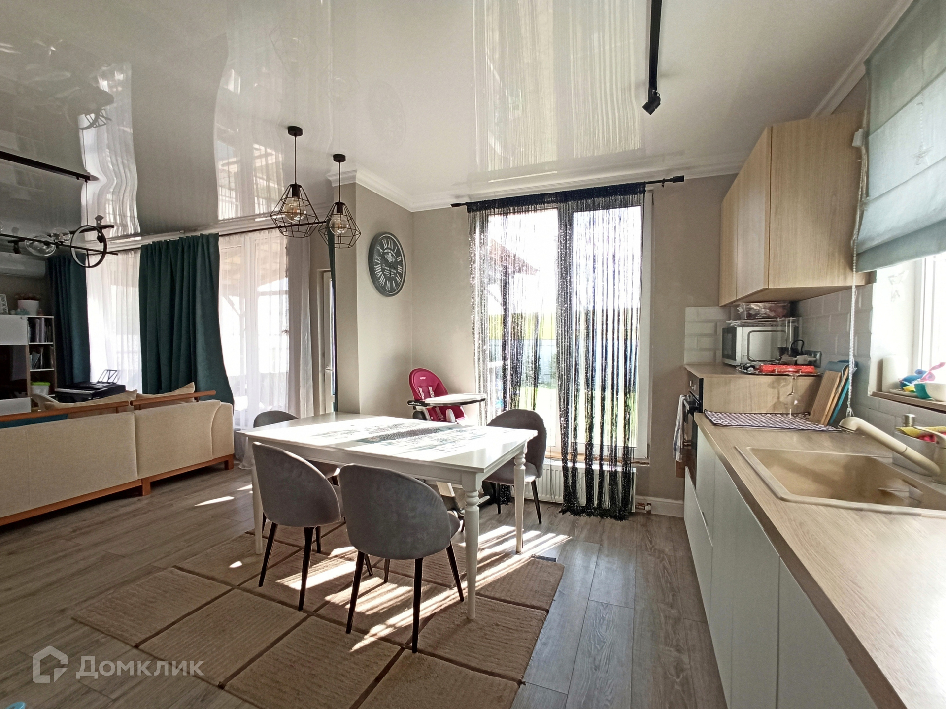 Для комфортной жизни здесь предусмотрено три спальни, просторная кухня-гостиная с выходом на террасу и участок, два санузла, гардеробная. Всё делали для себя. Установлена качественная сантехника Grohe, дорогая и функциональная кухня «Стильные кухни», встроенная посудомоечная машина.