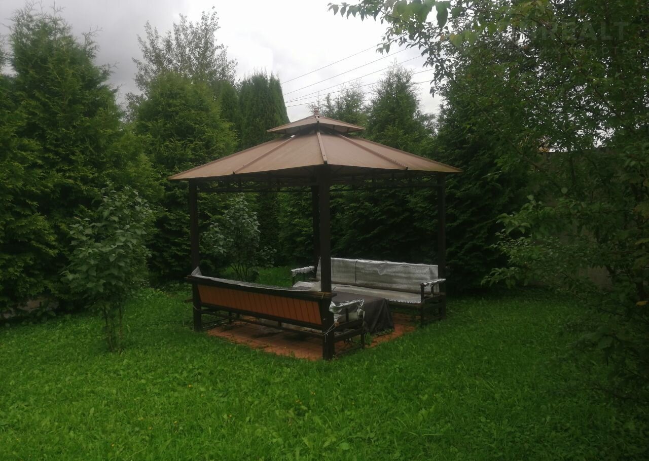 На участке есть беседка для отдыха, хозблок, открытая стоянка для машин. Территория участка- газон, лесные и садовые растения.