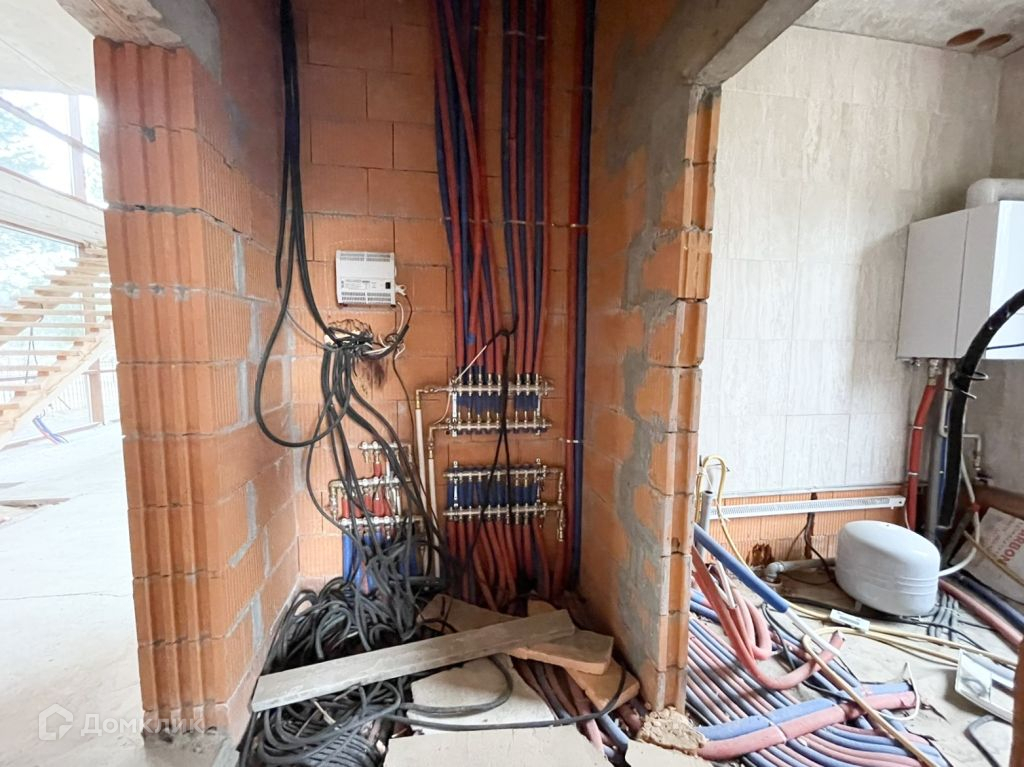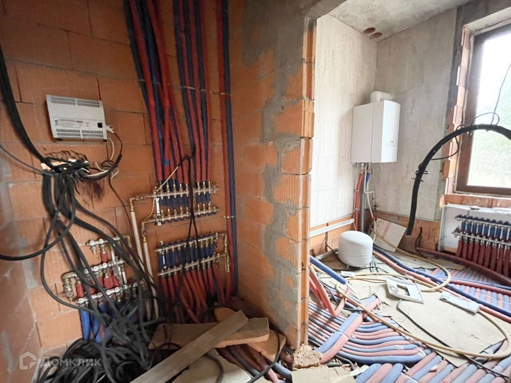 Коммуникации все заведены: Электричество 15 кВт, выводы под канализацию, вода-скважина, септик с переливом, газ (газгольдер), проложены теплые полы.