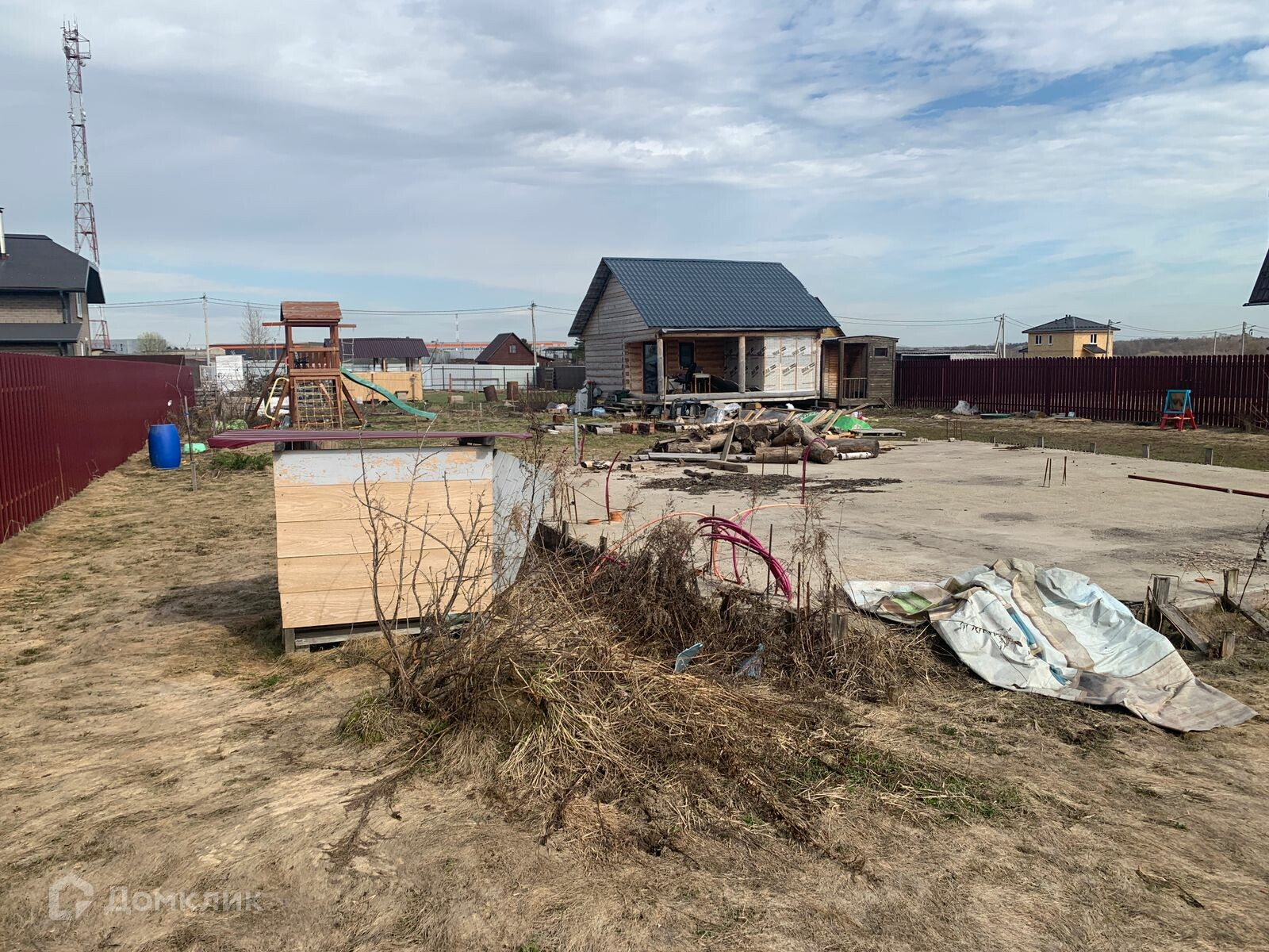 На участке имеется фундамент под строительство дома, утепленная шведская плита толщиной 500мм размером 10*10 метров.
