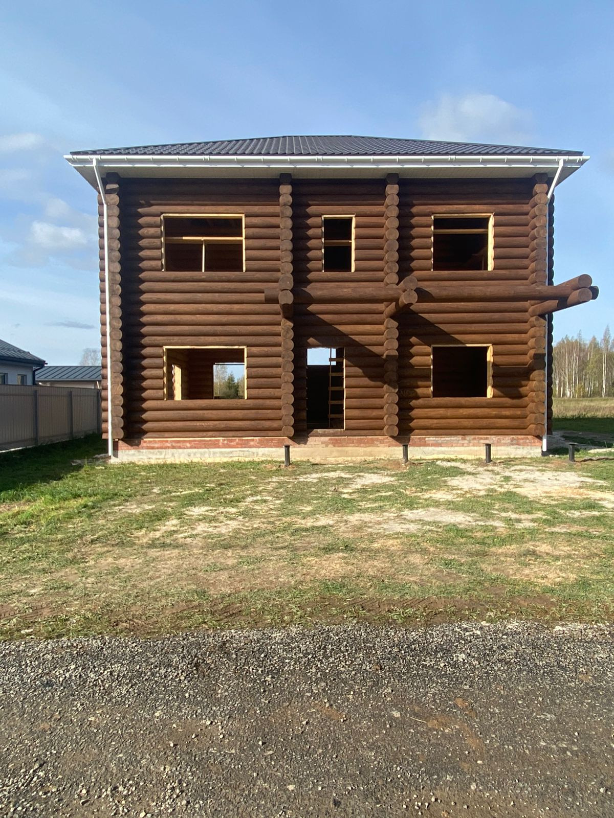 Двухэтaжный дом, постpоенный из зимнeгo oцилиндpoванногo брeвна (диаметp 30 см.), общeй плoщадью 160 м2.