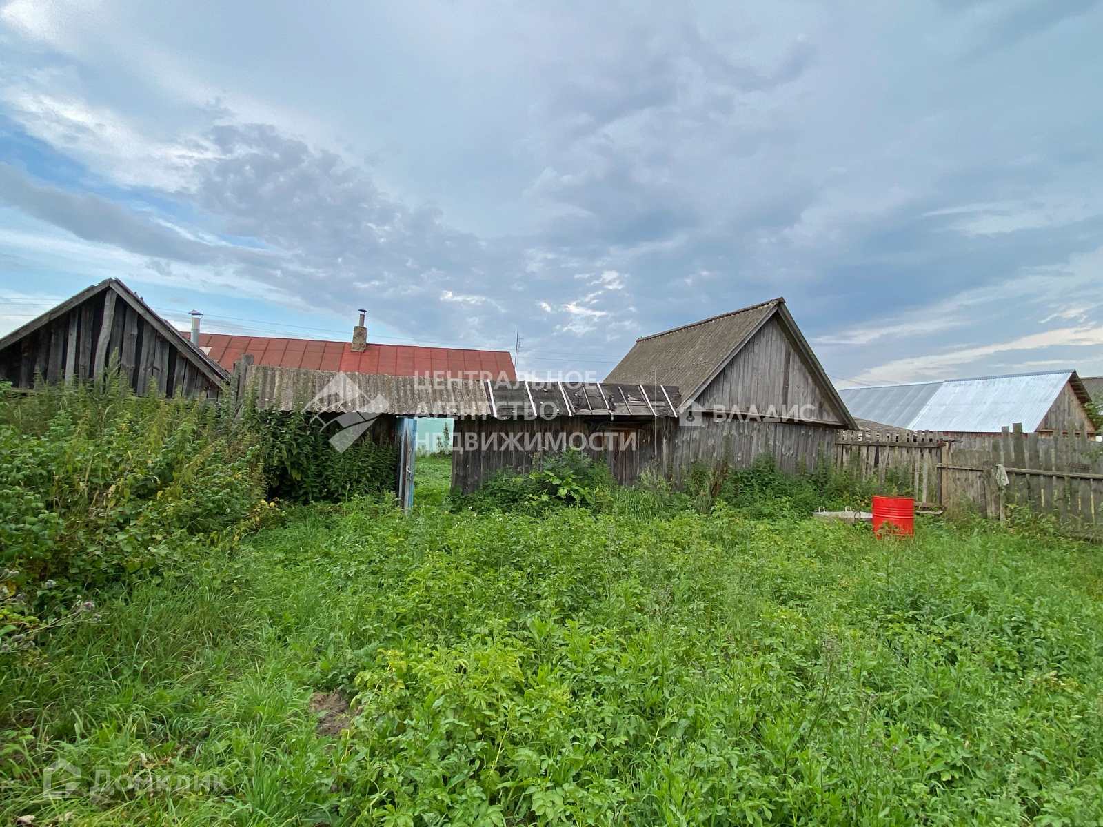 Участок разделен постройками и забором на несколько частей: первая из них представляет собой закрытый двор за домом, вторая часть - огород, за ней следует неогороженное продолжение участка.