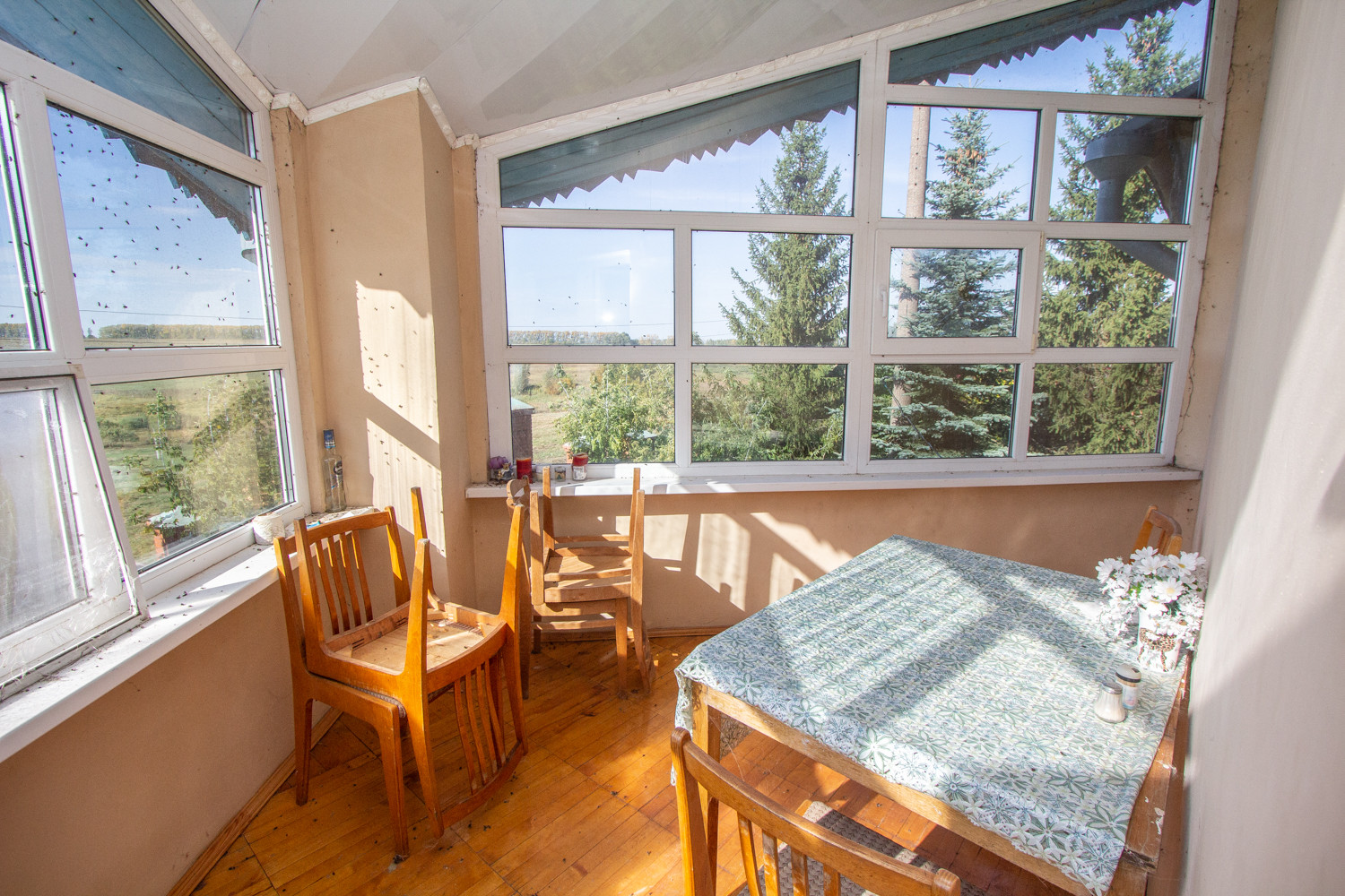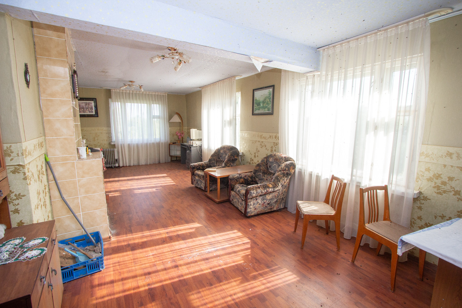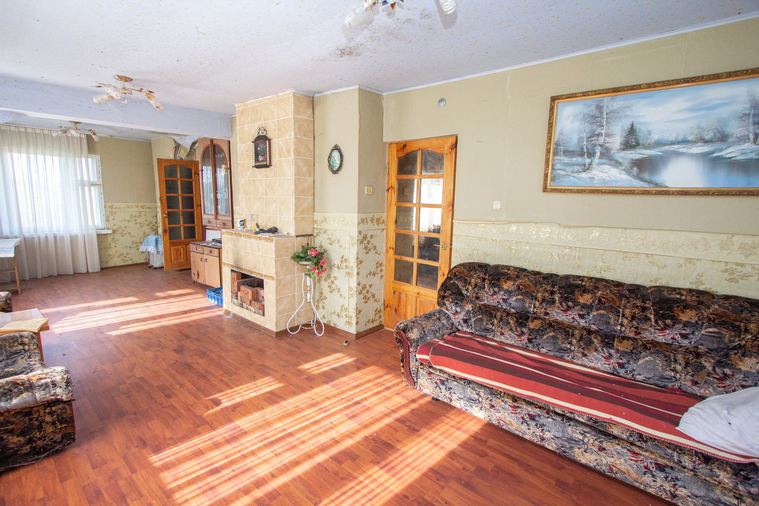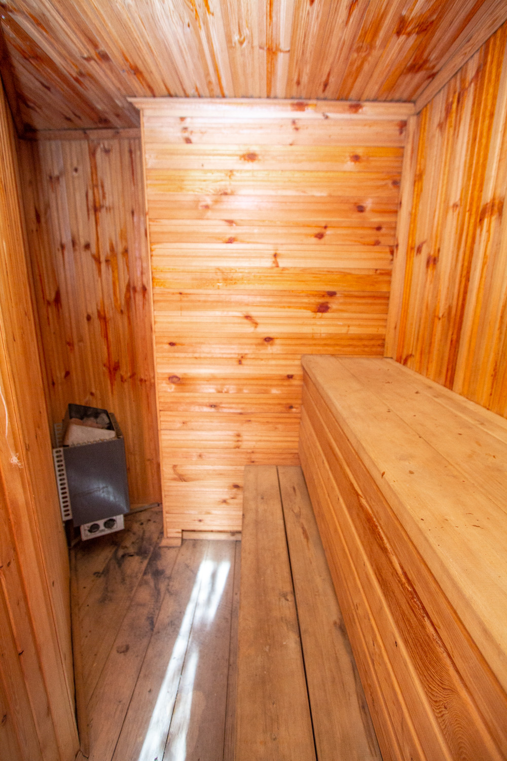 Внутренняя отделка из качественных материалов, стены – блок хаус дерево, на полу ламинат и напольная плитка - обогреваемые полы.