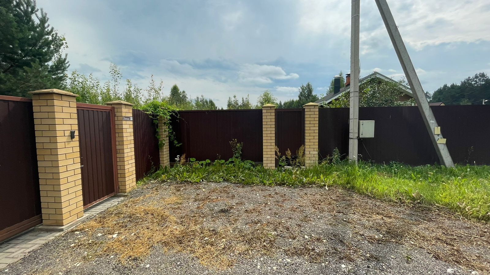 Участок ровный, правильной формы, огорожен забором из проф. листа с откатными воротами.