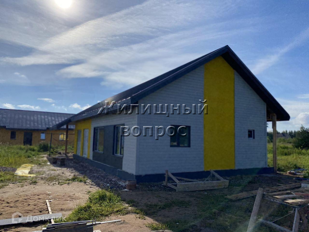 Дом построен из газоблоков (300 мм.),черновая отделка, утеплен минеральной плитой 50 мм. и отделан снаружи в комбинации вентилируемого и мокрого фасада .Фундамент дома: Утепленная шведская плита.Утепленная 2-х скатная крыша с надежной стропильной системой, фальцевая кровля. Электроэнергия:15 кВт, 3-х фазное, 2-х тарифное день/ночь. Водоснабжение:индивидуальная скважина.Канализация:автономная станция биологической очистки (септик).Отопление-теплый пол, без радиаторов. К участку подходит дорога из щебня с мелкой асфальтной крошкой.
