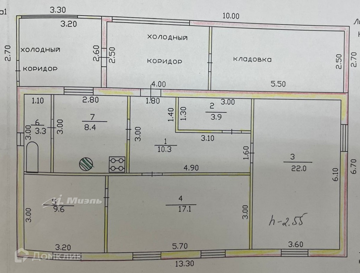 Высота потолков 2.85 м