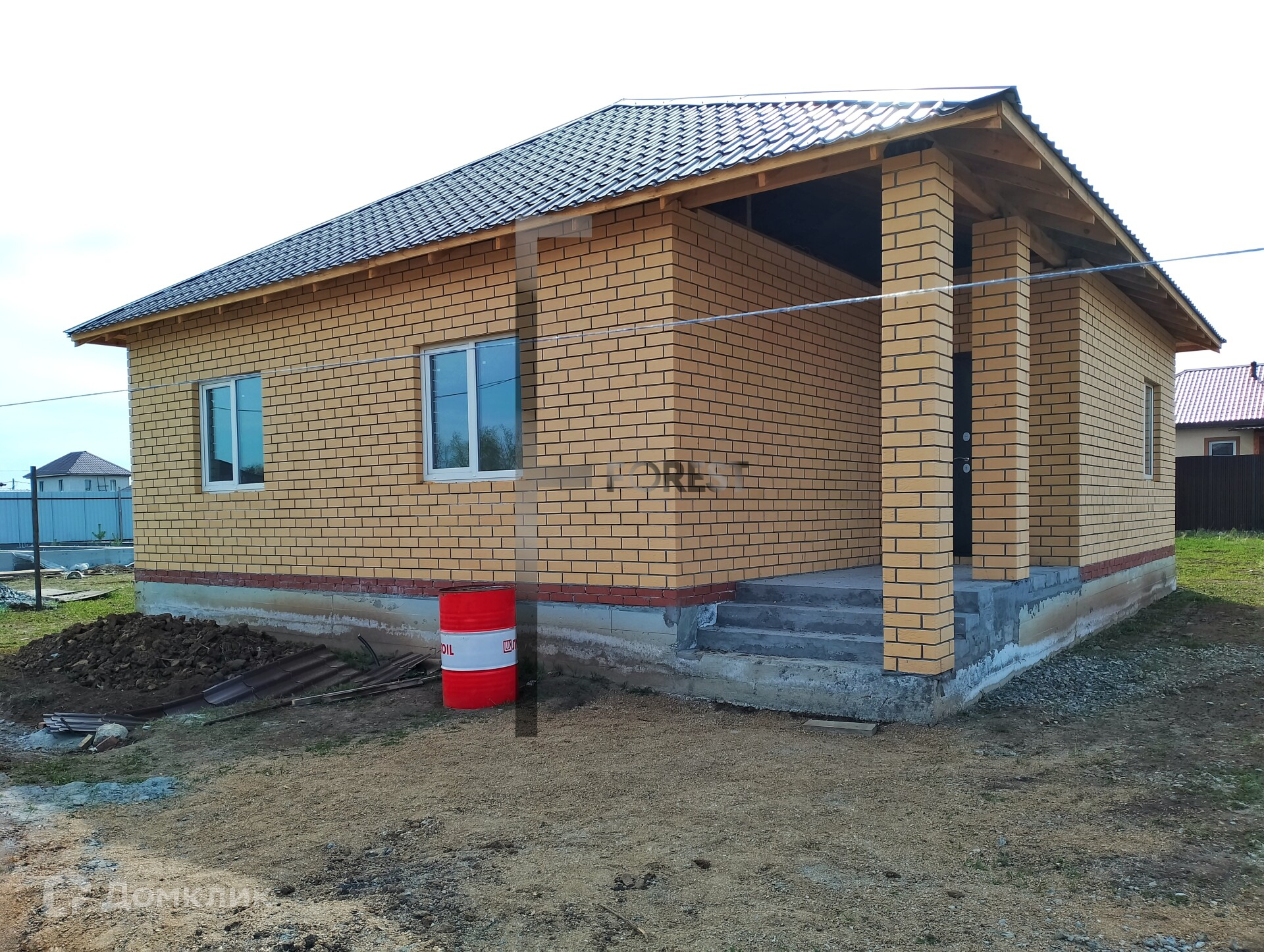 Фундамент свайно-ростверковыйСтены газоблок 300мм/ облицованы кирпичомОборудованная котельнаяСобственная скважина 50мКанализация- бетонный септикКрыша- металлочерепицаВнутренняя отделка- "под чистовую"