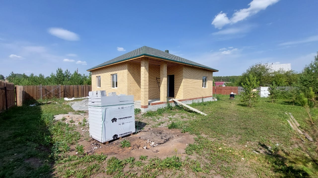 Материал стен: Твин-блок 300мм + 50 мм утеплитель. Внешняя отделка- кирпич.