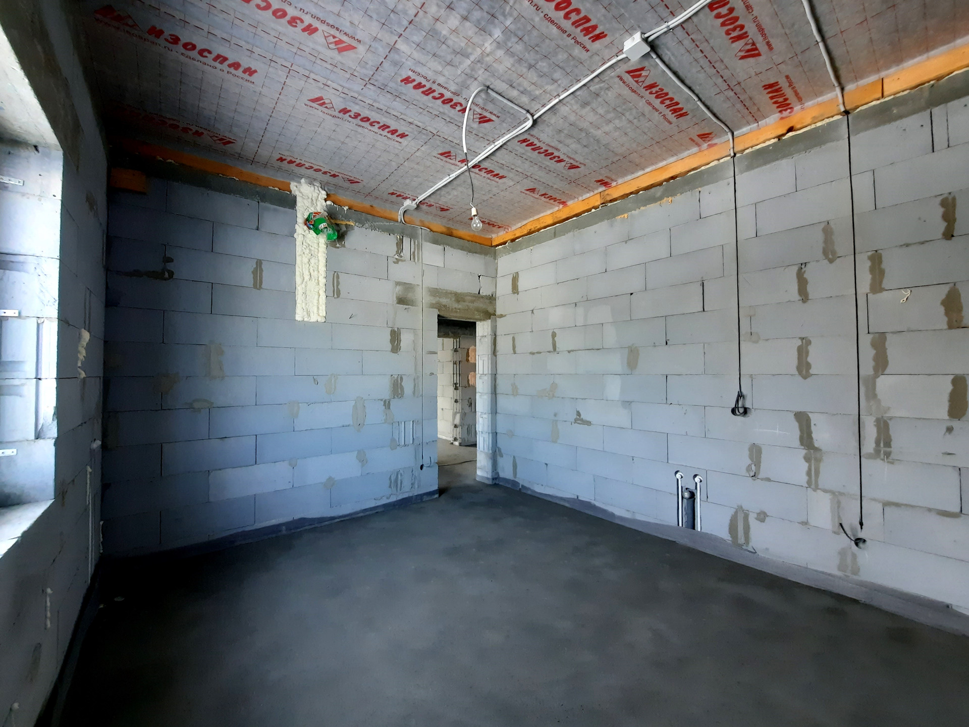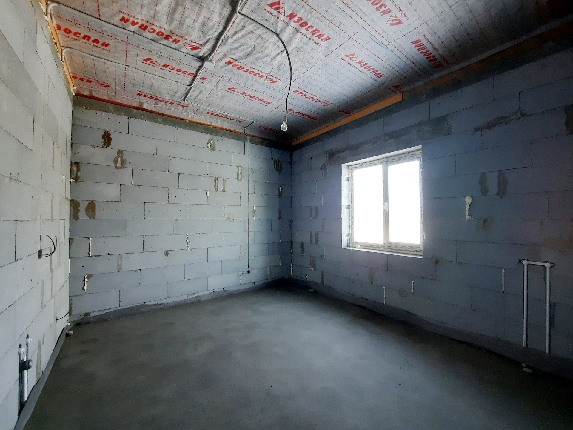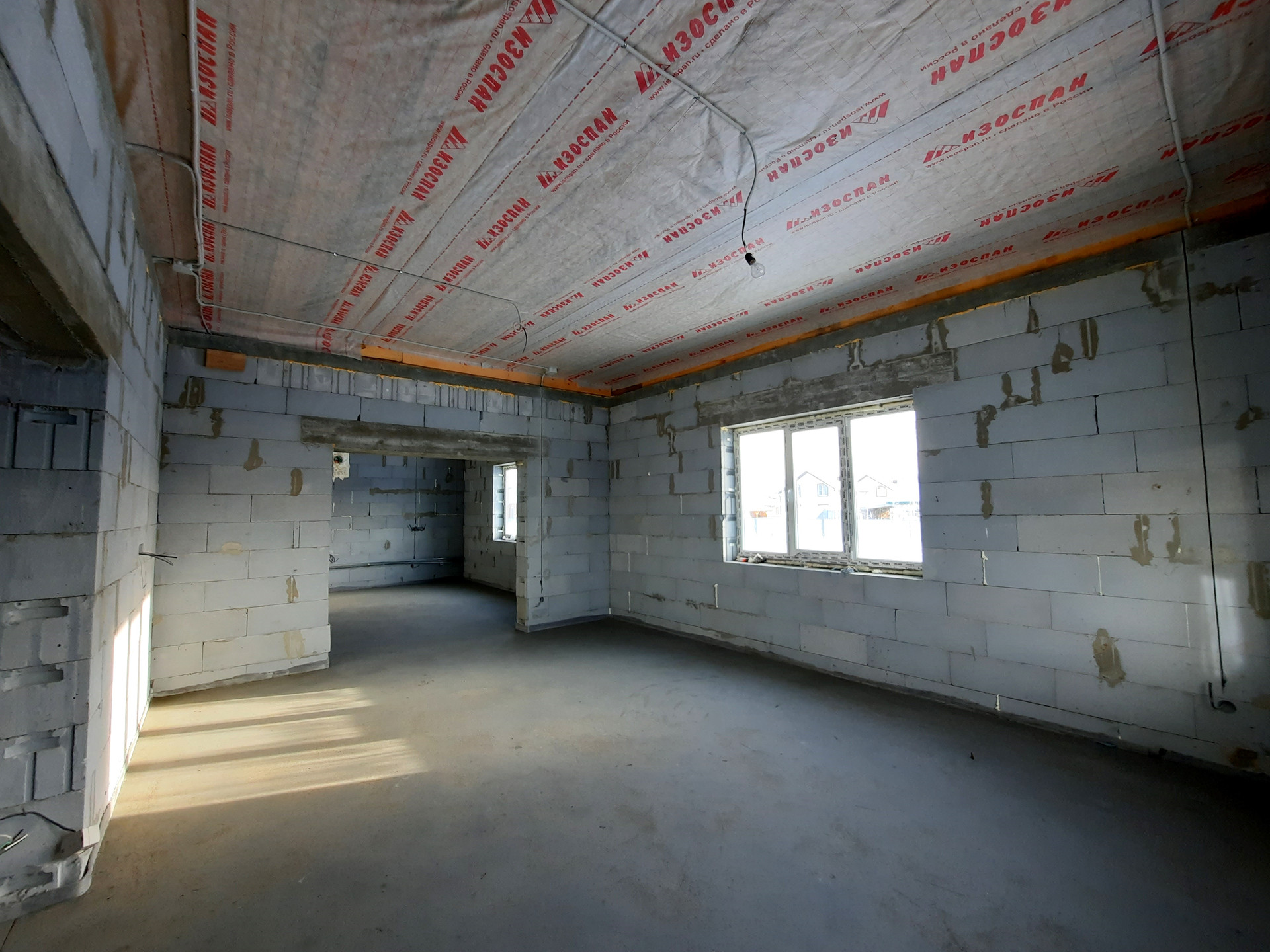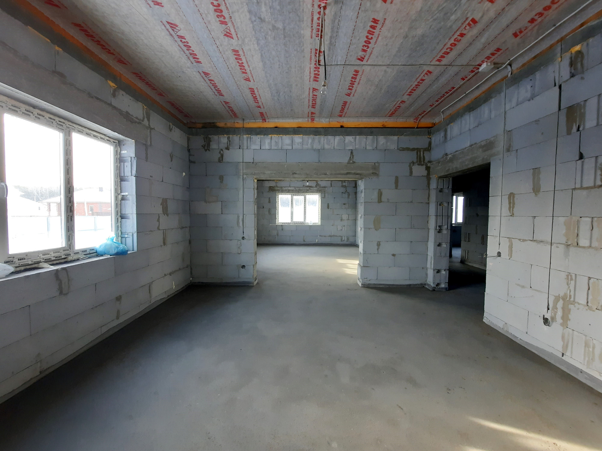 Дом в процессе отделки под чистовую (заливка тёплого пола, штукатурка стен).