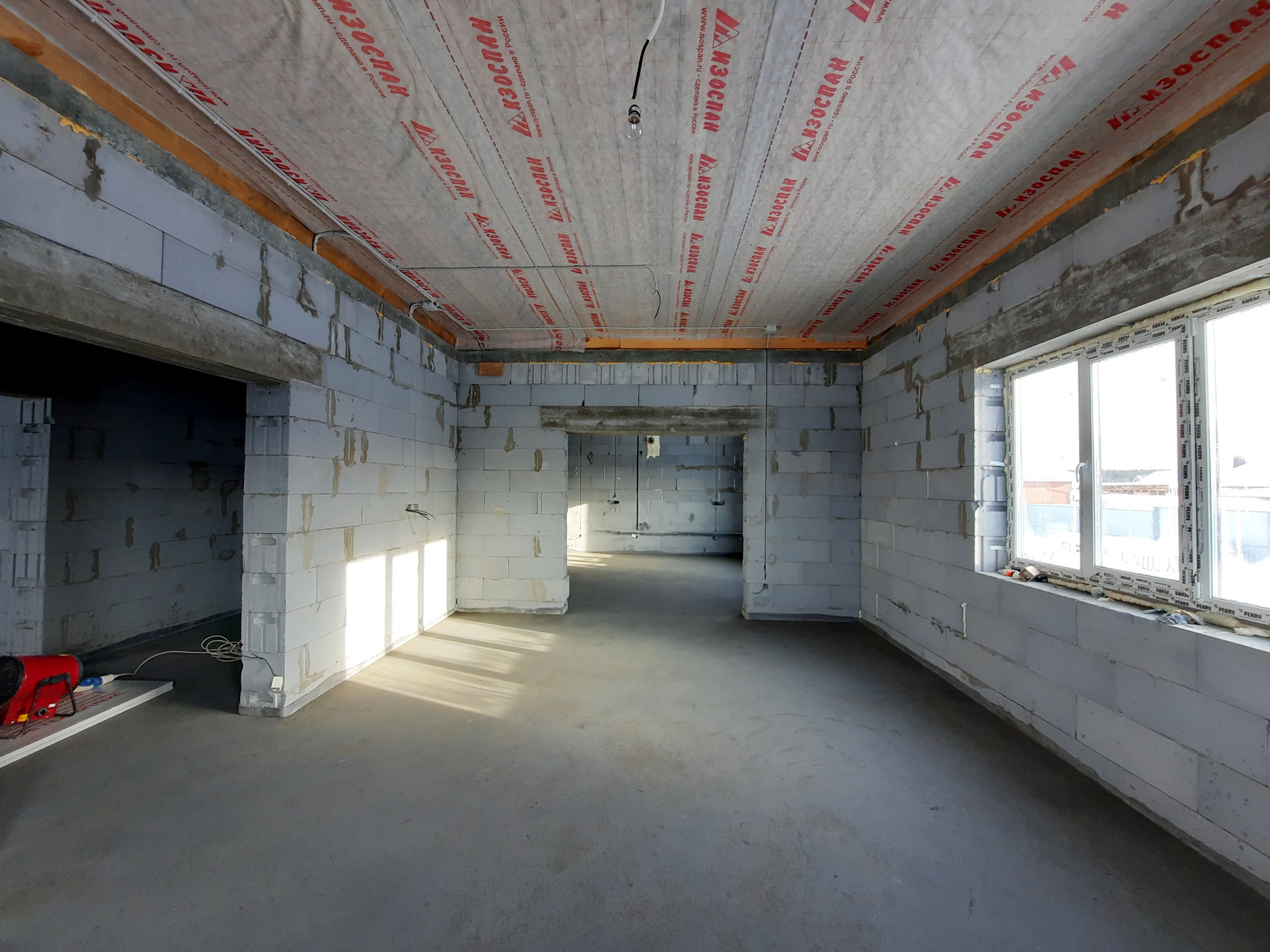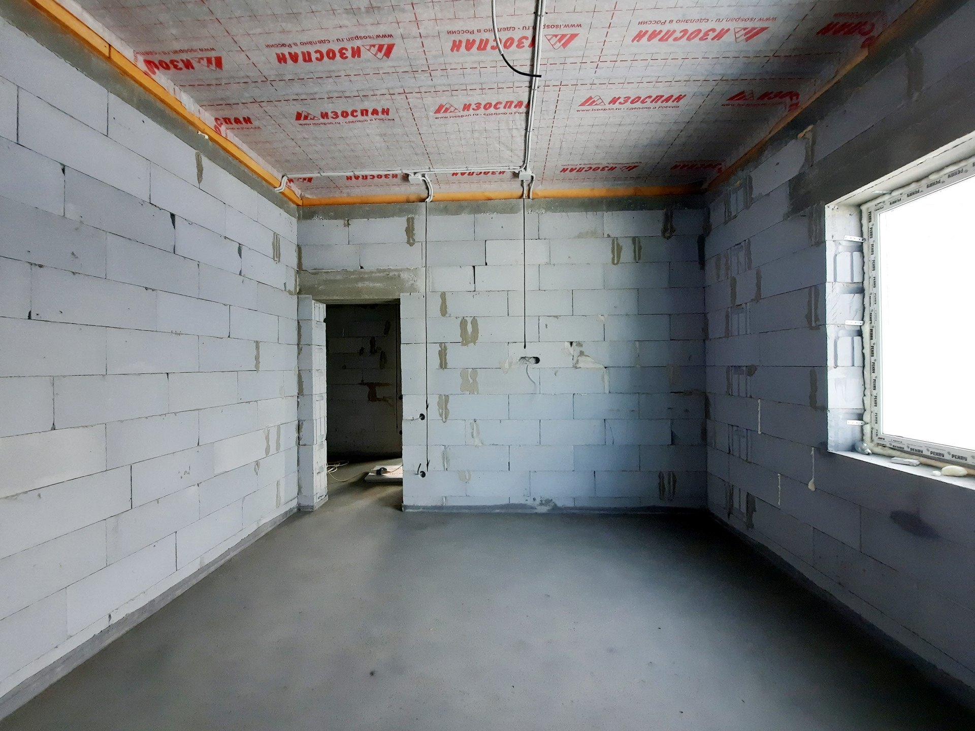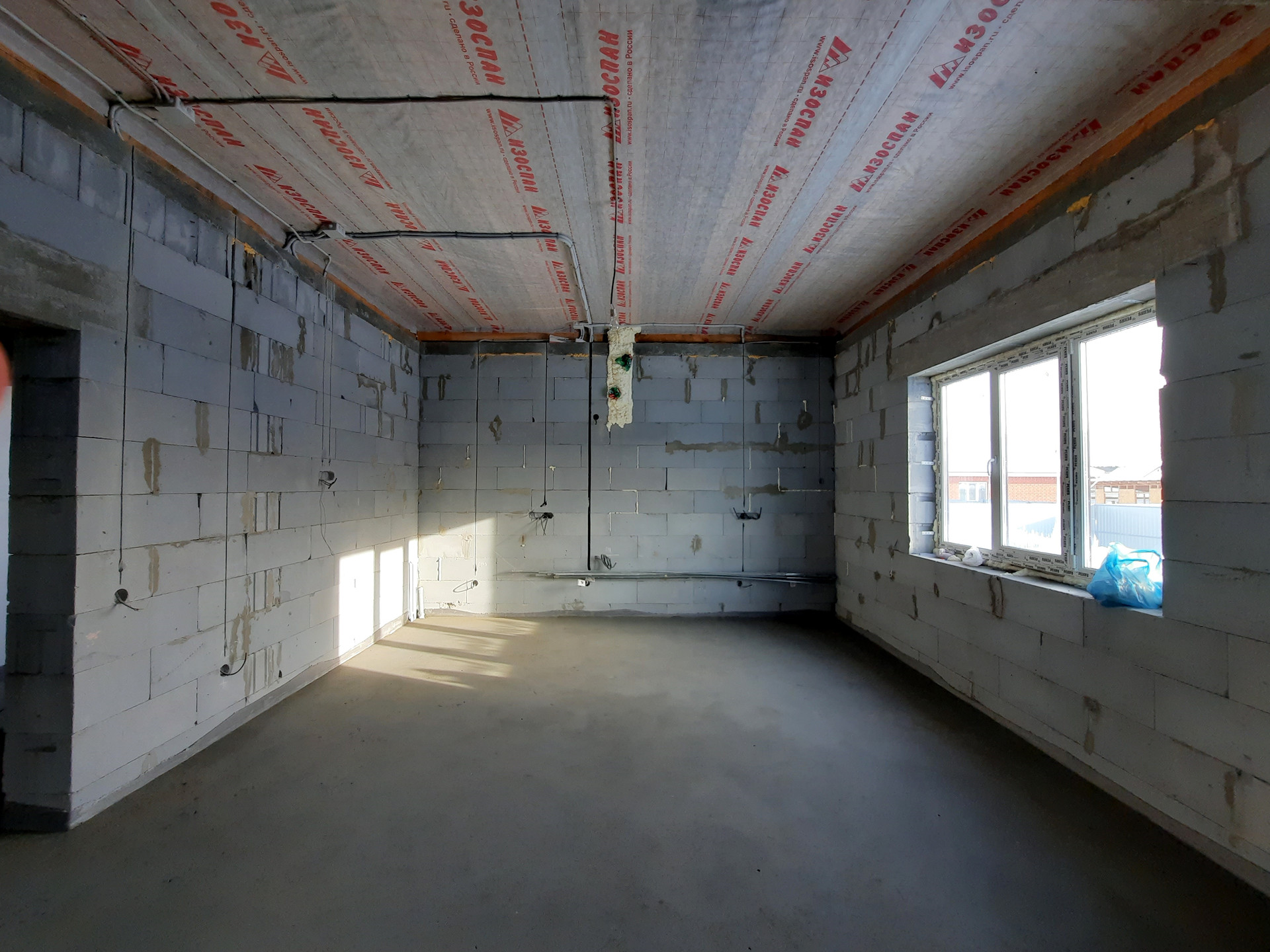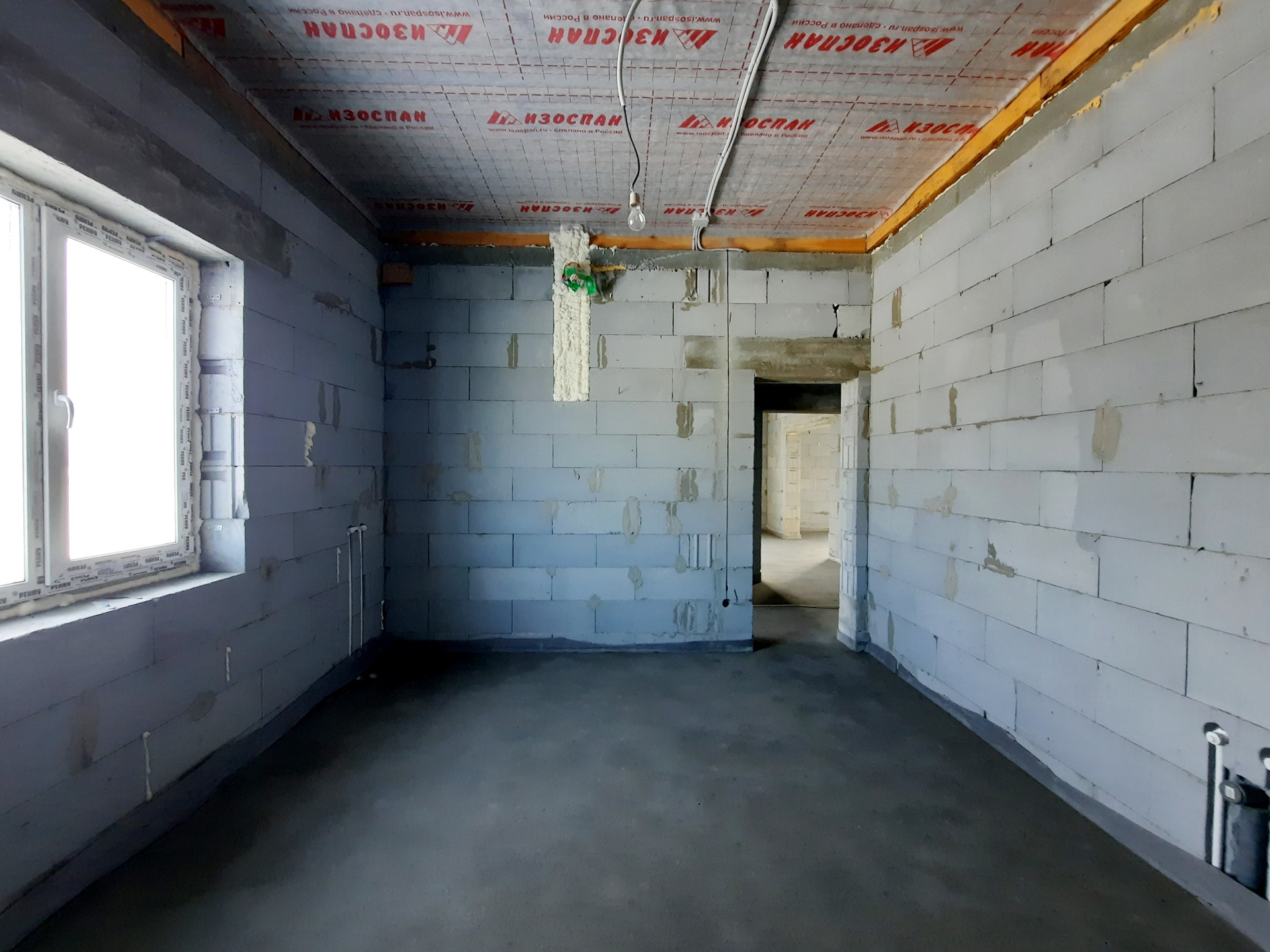 Дом в процессе отделки под чистовую (заливка тёплого пола, штукатурка стен).