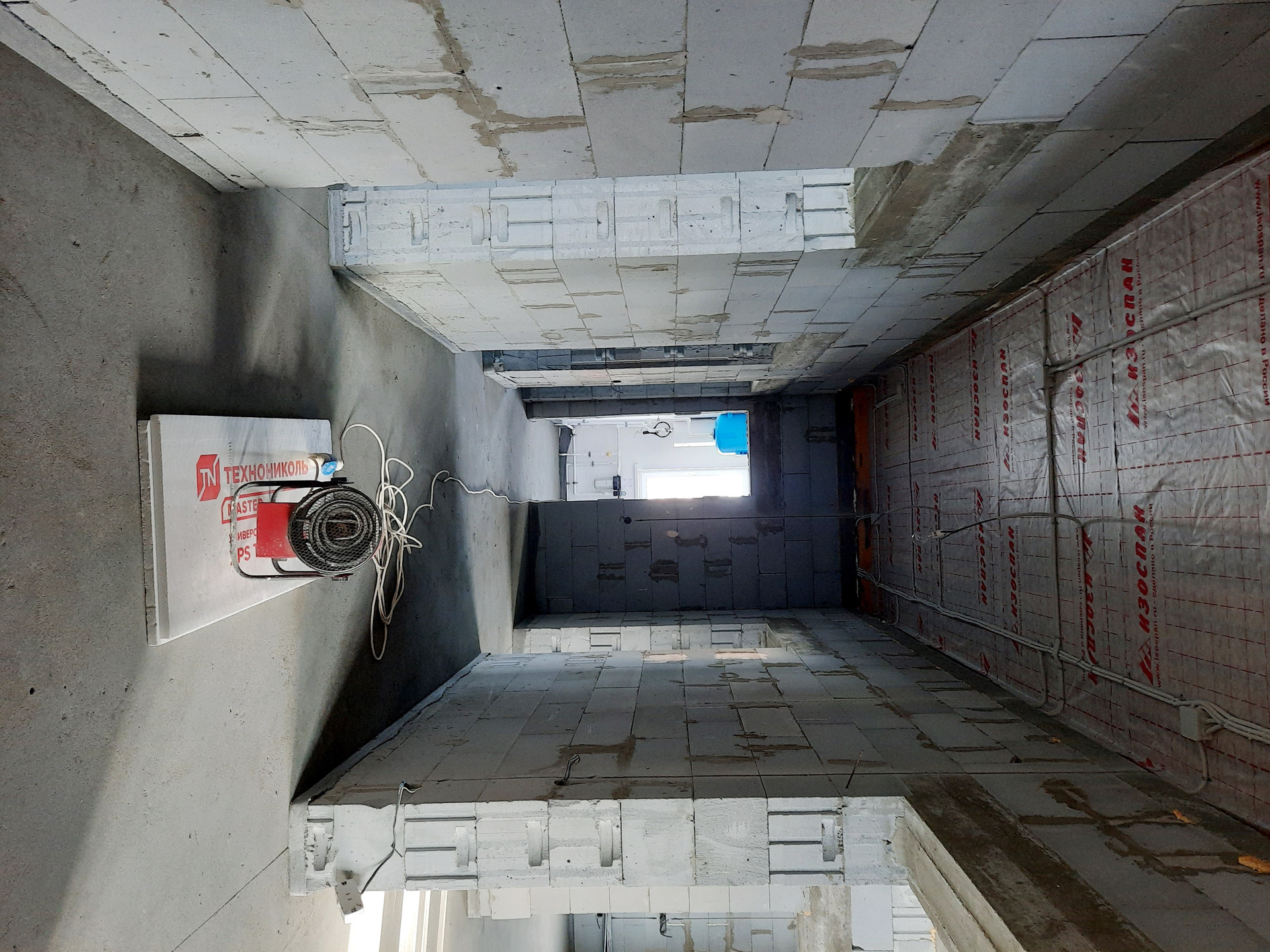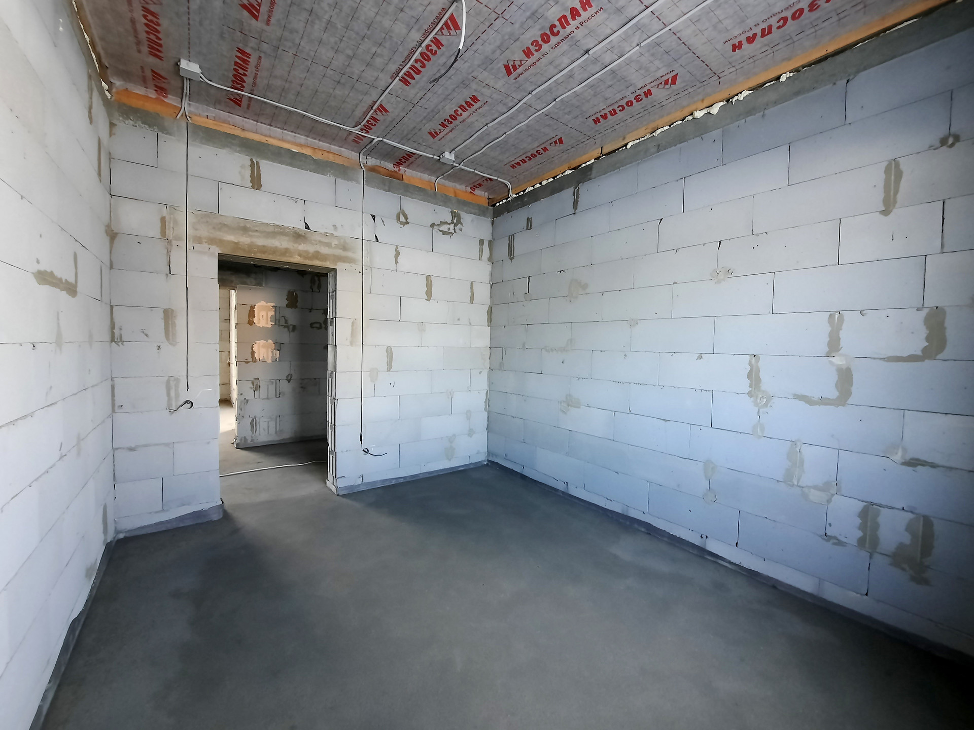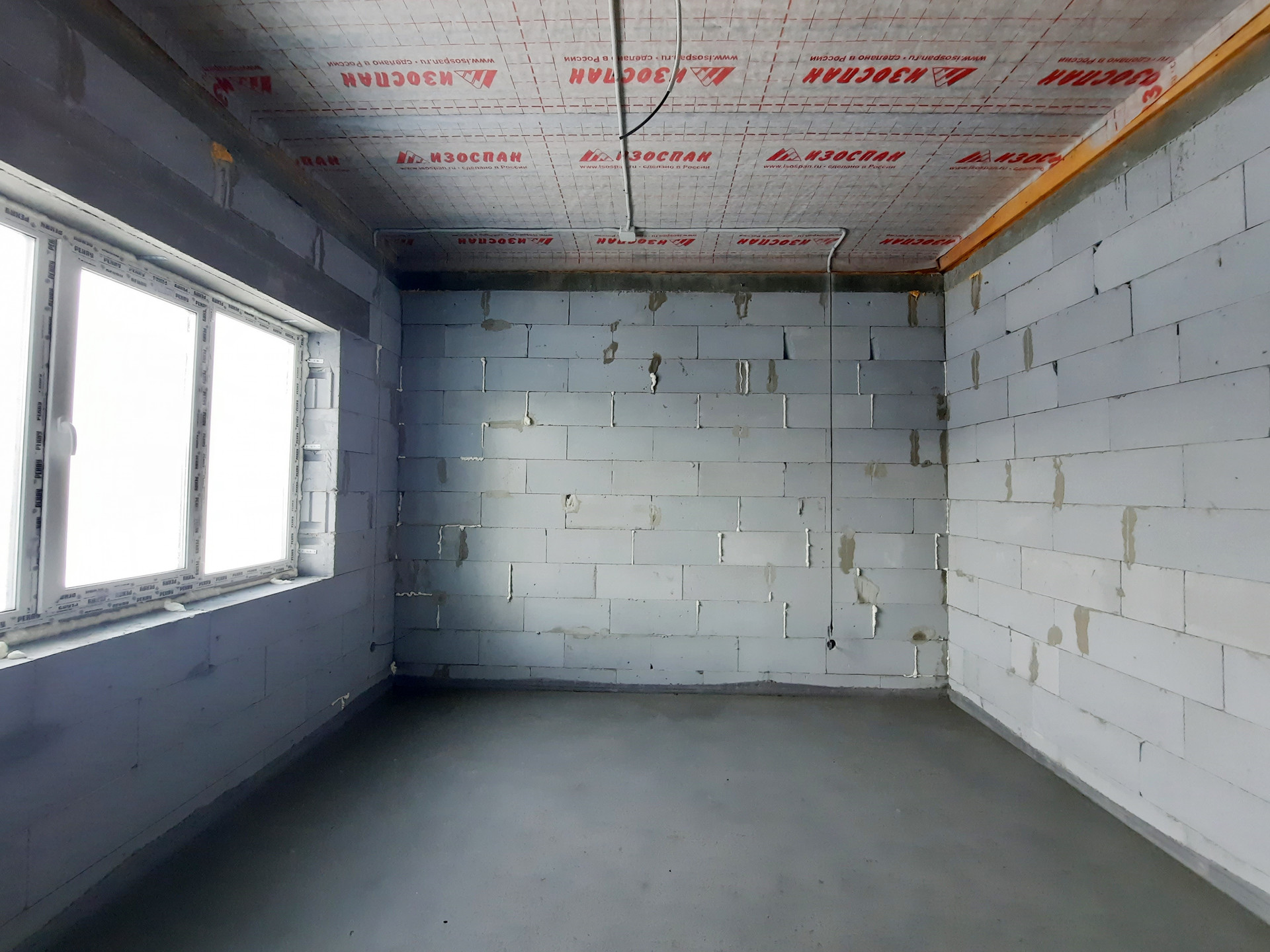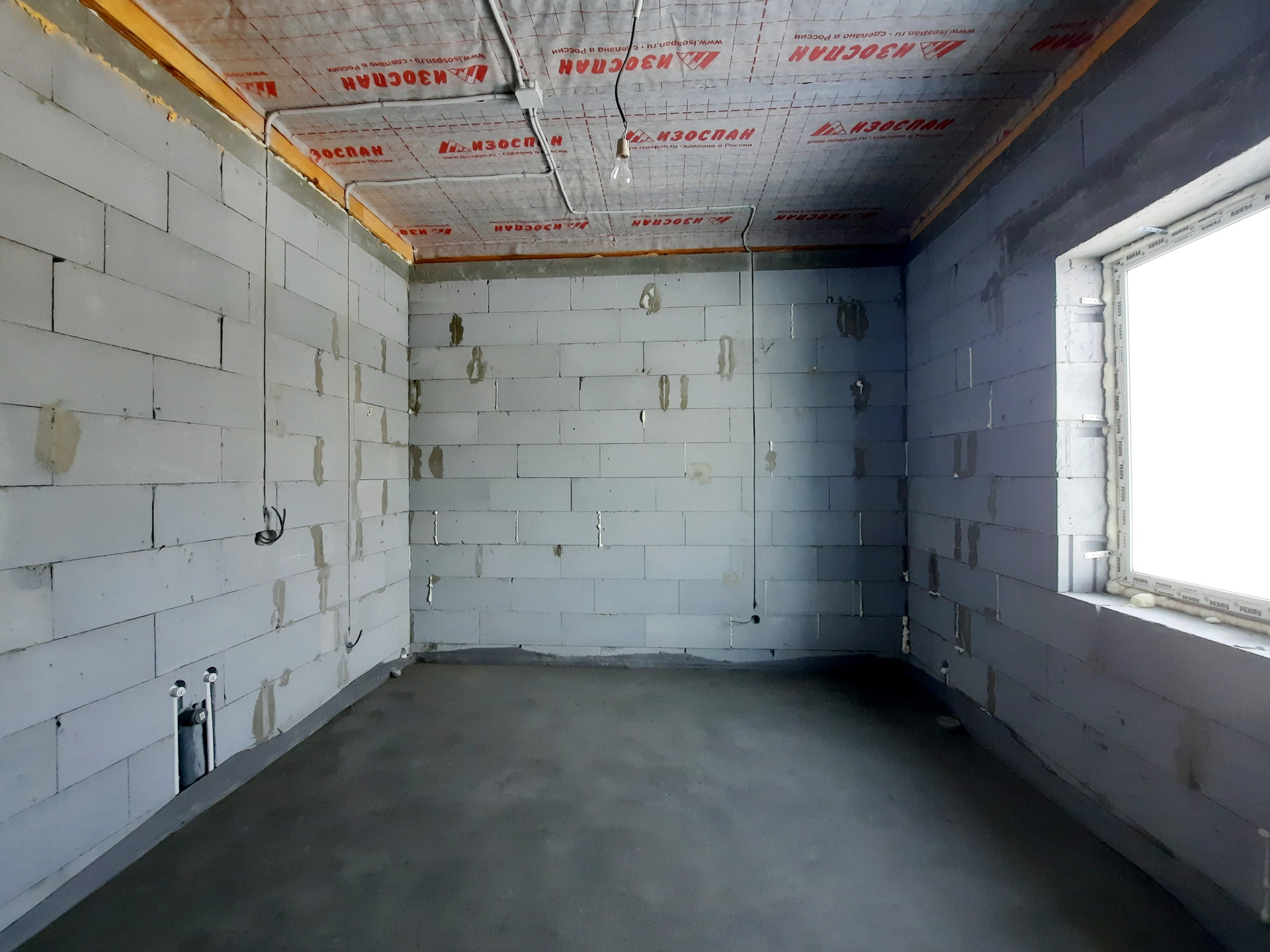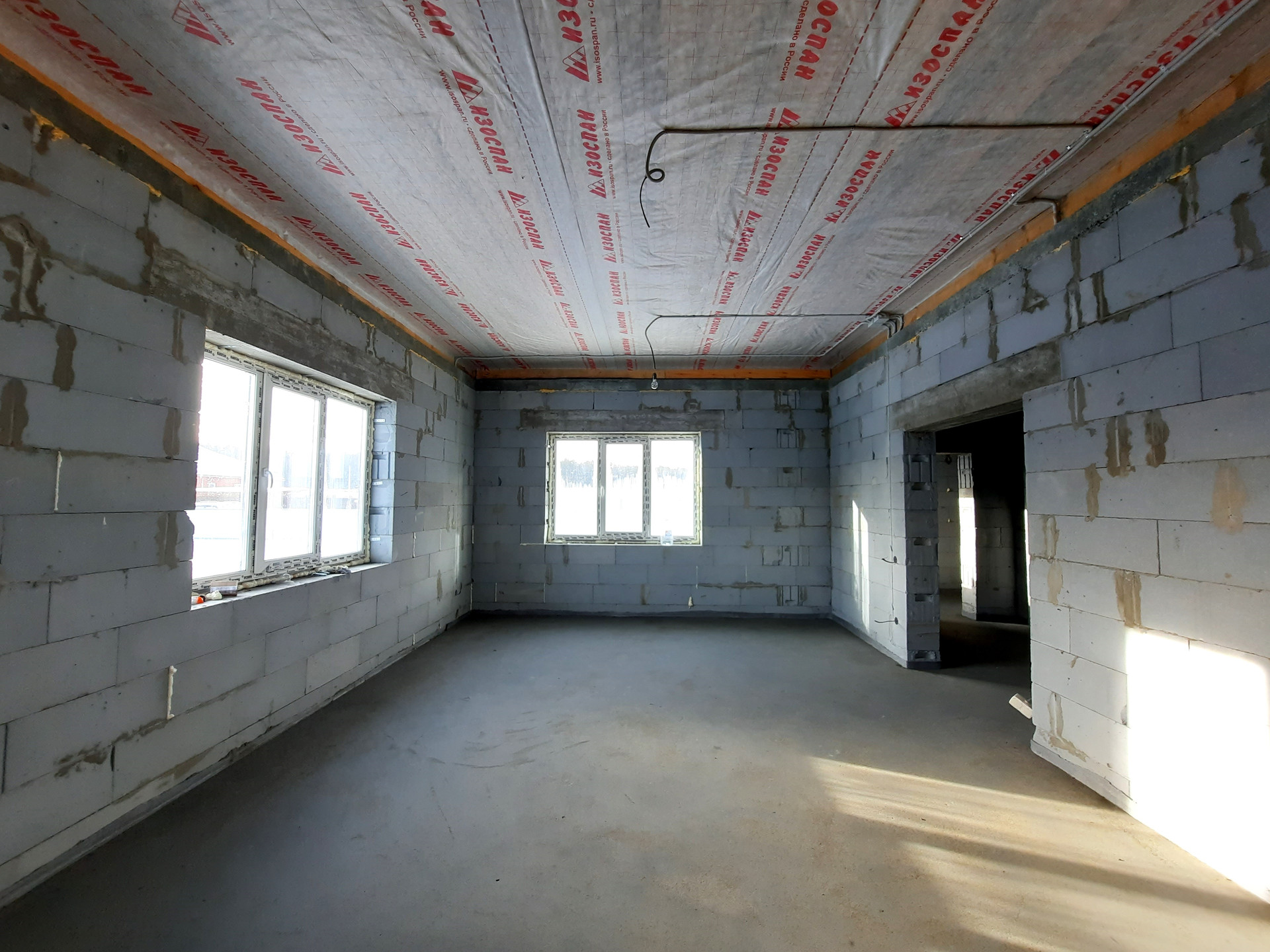 Дом в процессе отделки под чистовую (заливка тёплого пола, штукатурка стен).