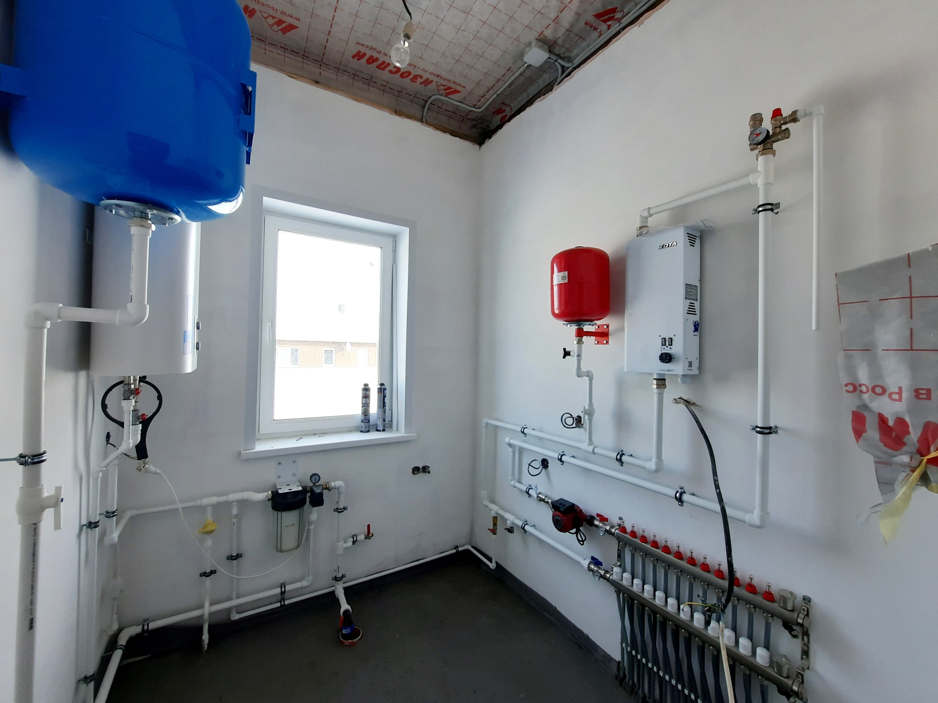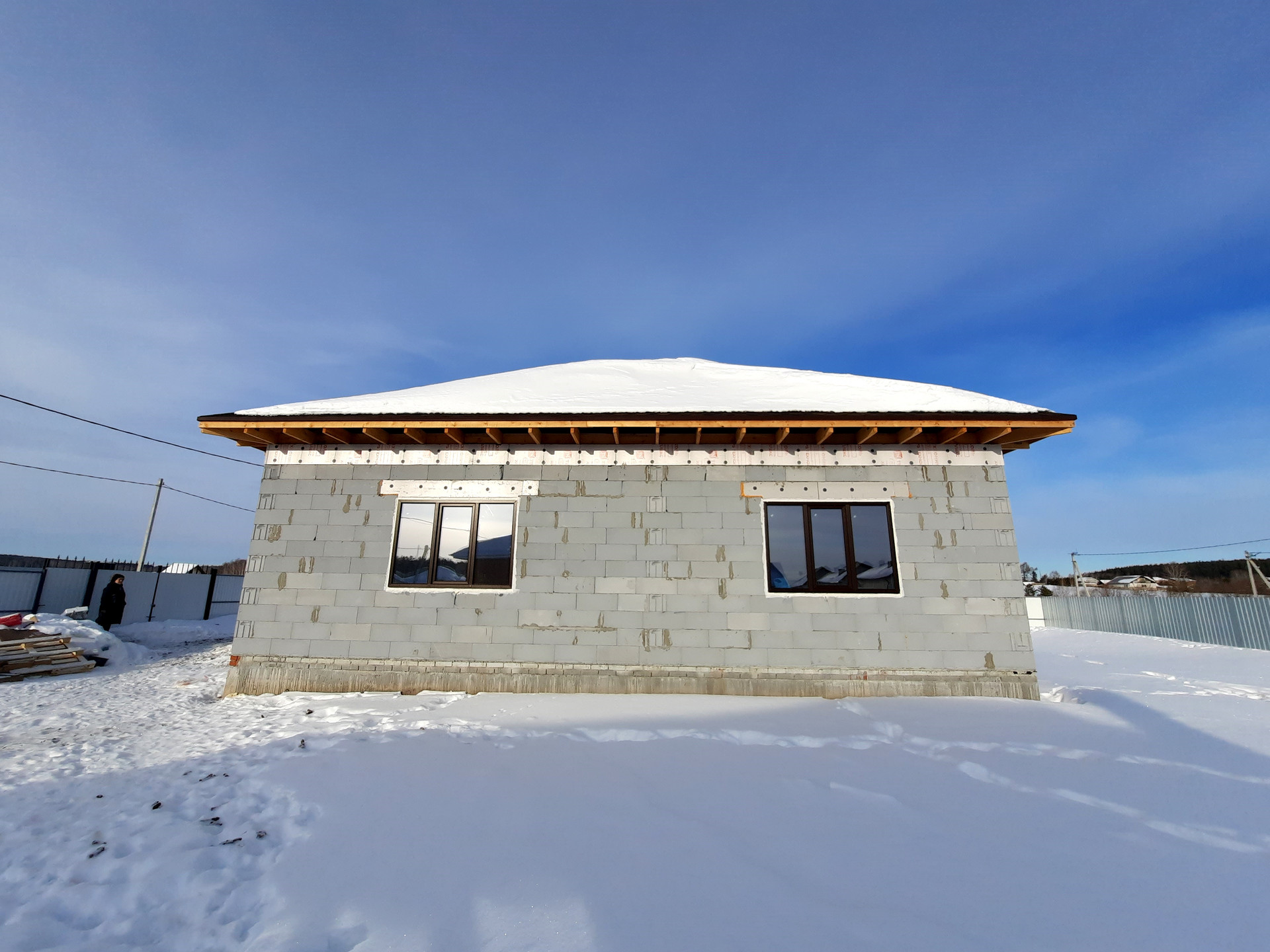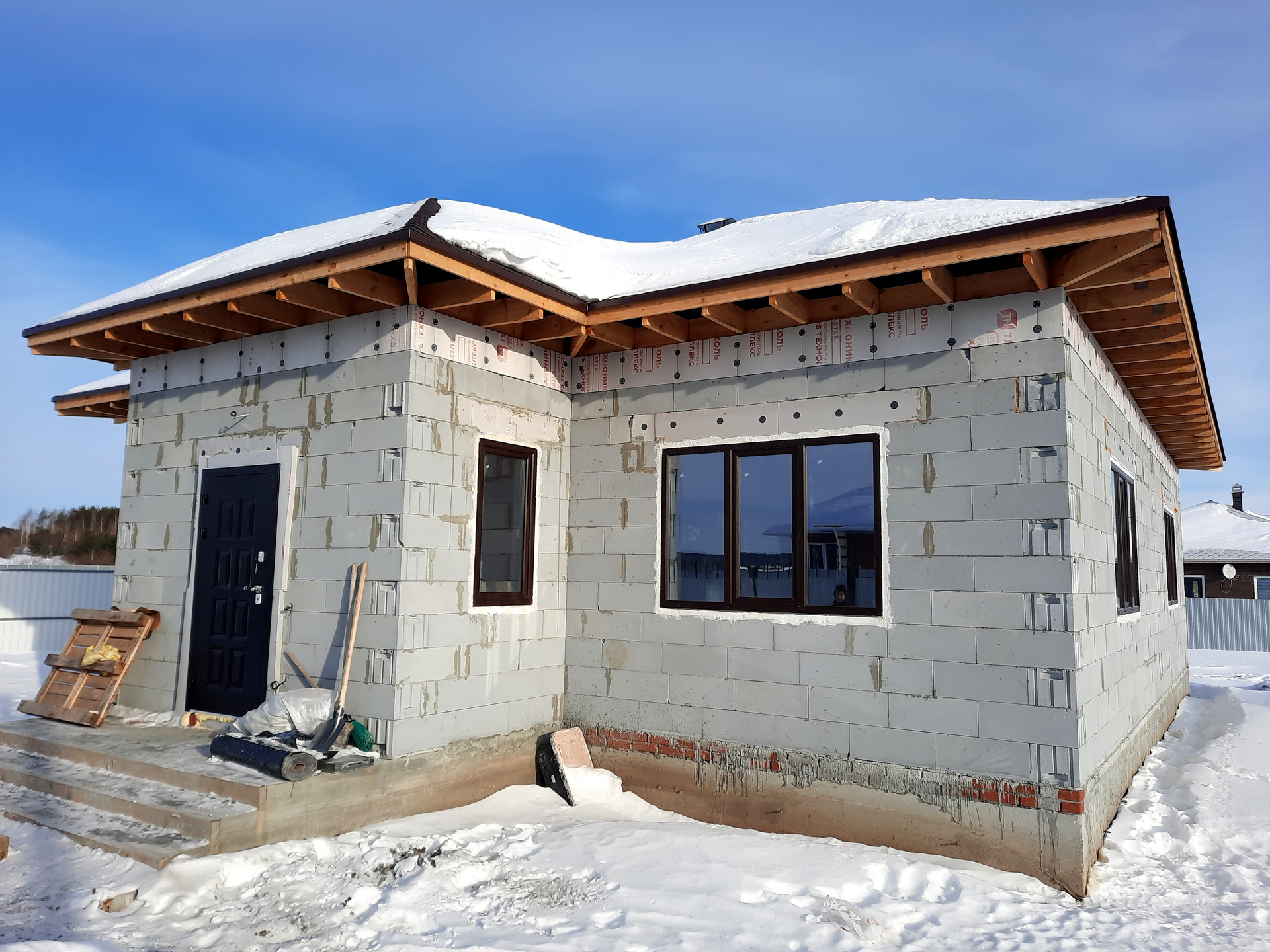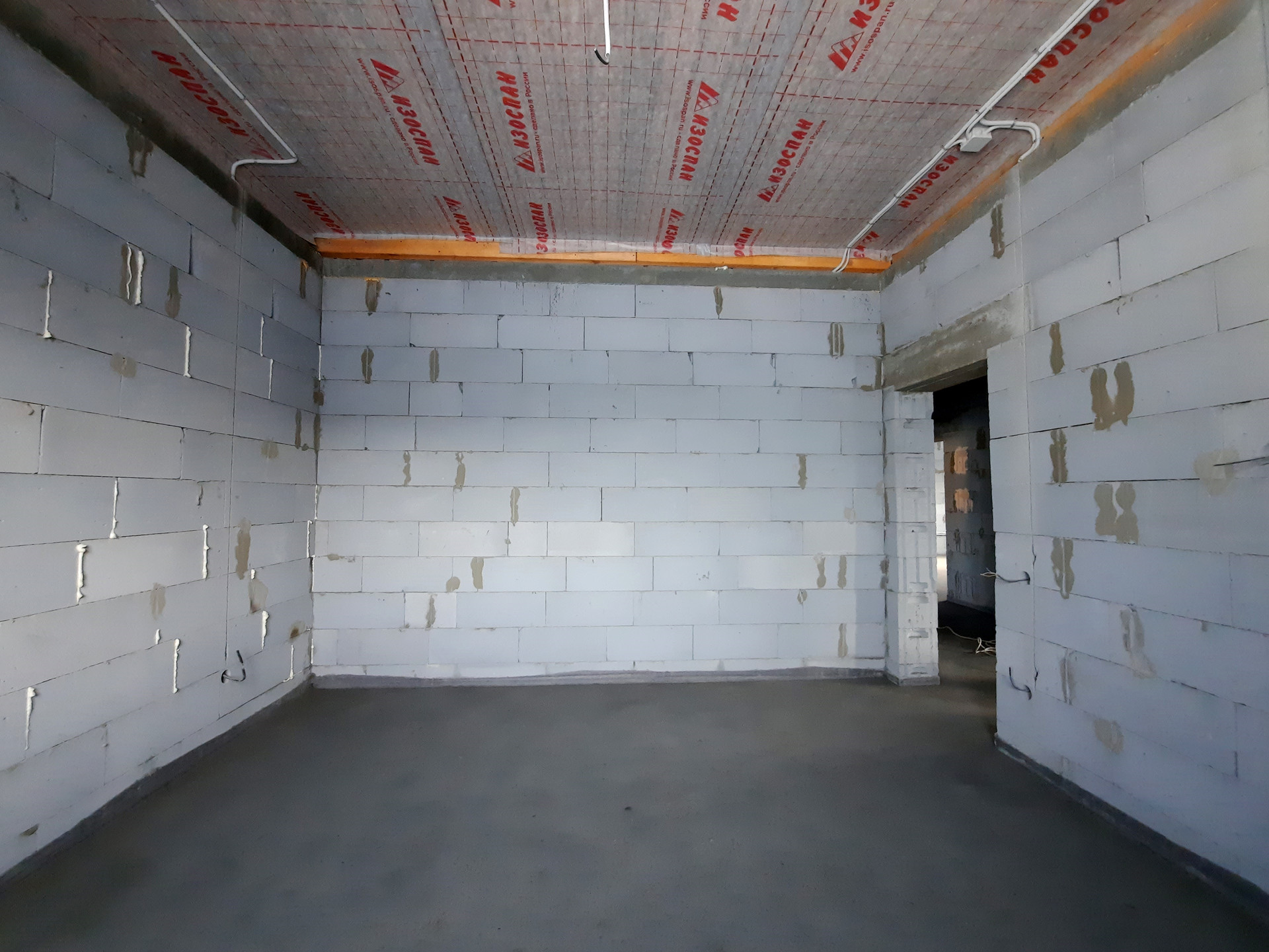 Дом в процессе отделки под чистовую (заливка тёплого пола, штукатурка стен).