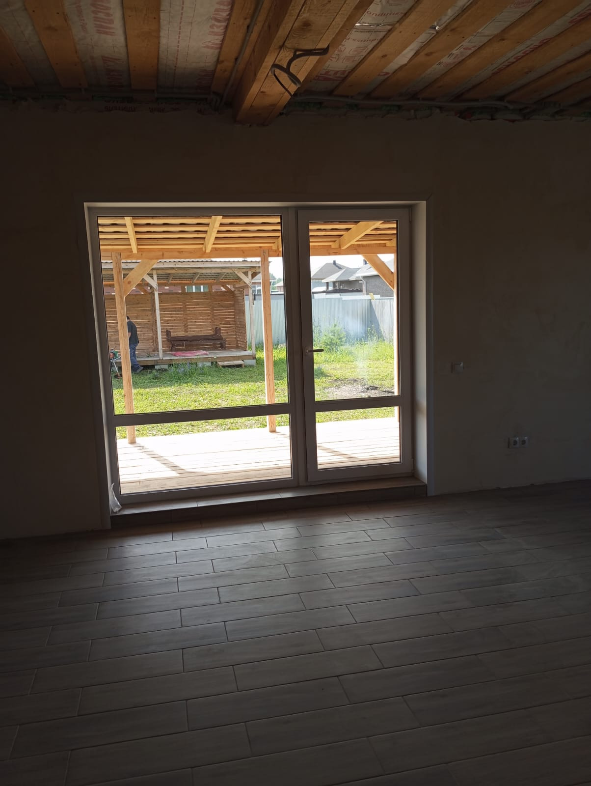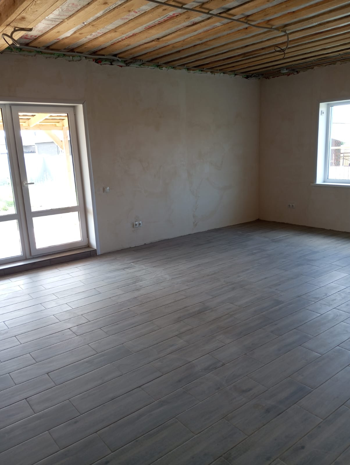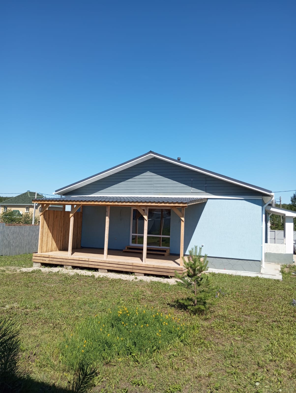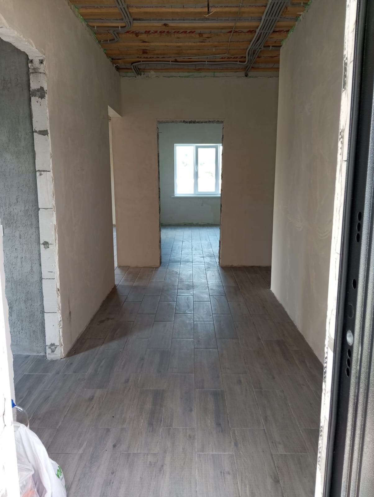 Дом общая площадь 130 м2, терасса 24 м2, Крыша металлочерепица, утепление 200. Стены отделка кароед , утепление на 100. Вокруг дома сделана отмостка. Крыльцо обложено плиткой. В доме 4 комнаты ( три спальни и кабинет). Два сан узла, первый при входе в дом в котельной, второй возле спален выложен плиткой . В котельной оборудование все подключено ( насос для скважины, электро котел, расширительный бочок, водонагреватель). По всему дому разведен теплый пол,выложена плитка. Сделана вентиляция. Большая кухня гостиная 51м2, большое панорамное окно с выходом на террасу. Для самого идеального проживания нужно поклеить обои, натянуть потолки, поставить межкомнатные двери.
