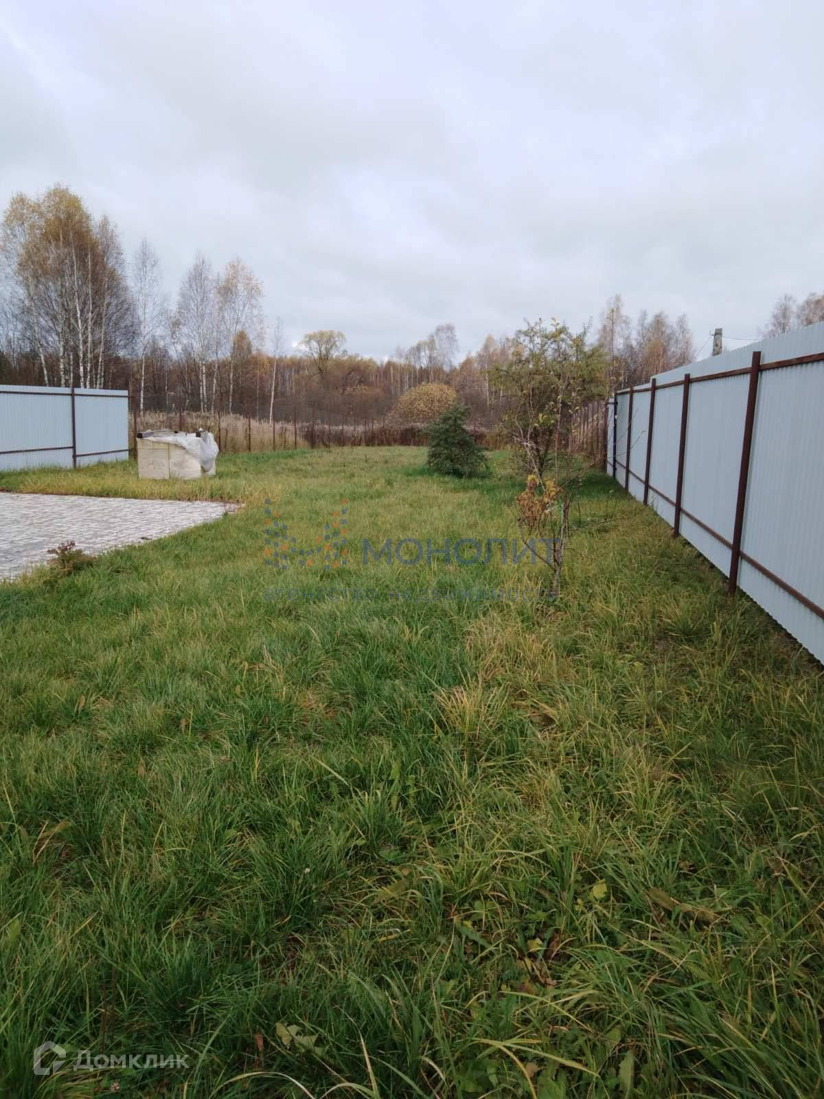 Земельный участок правильной формы площадью 841 кв м. Вокруг строений выложена брусчатка, на остальной части участка посажены яблони, груши, чёрная смородина, облепиха и посеяна газонная травка.