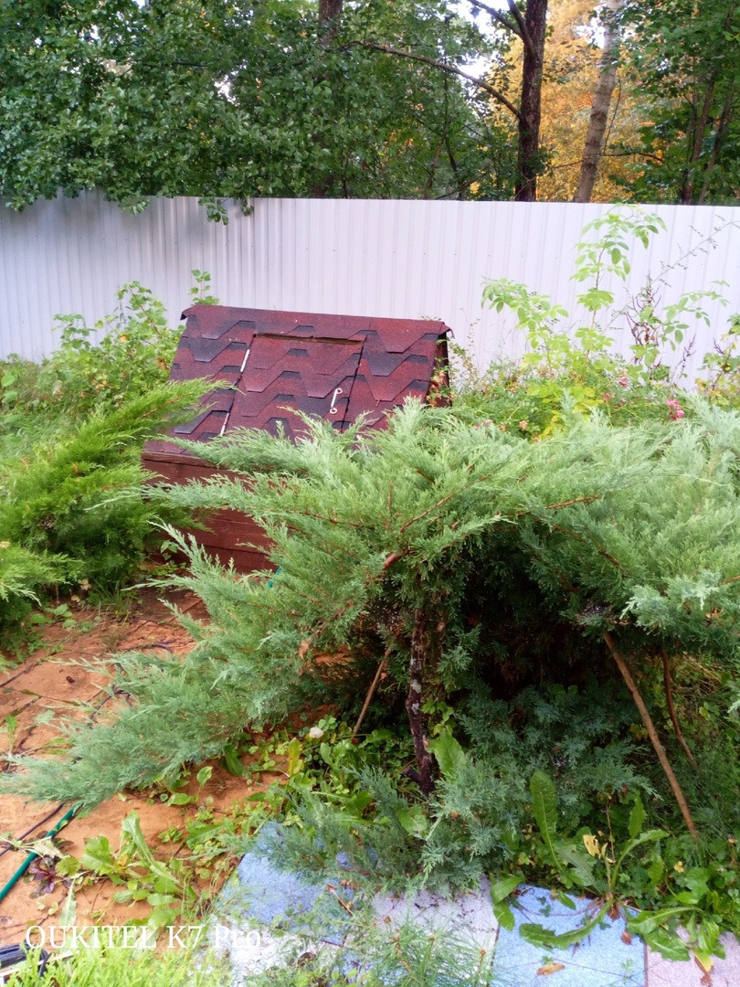Участок ровный, имеются плодовые деревья и кустарники