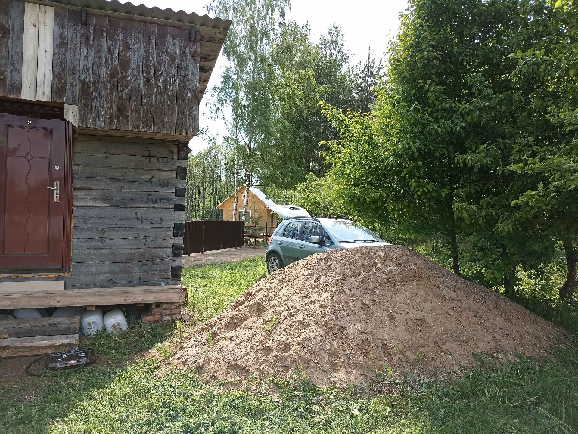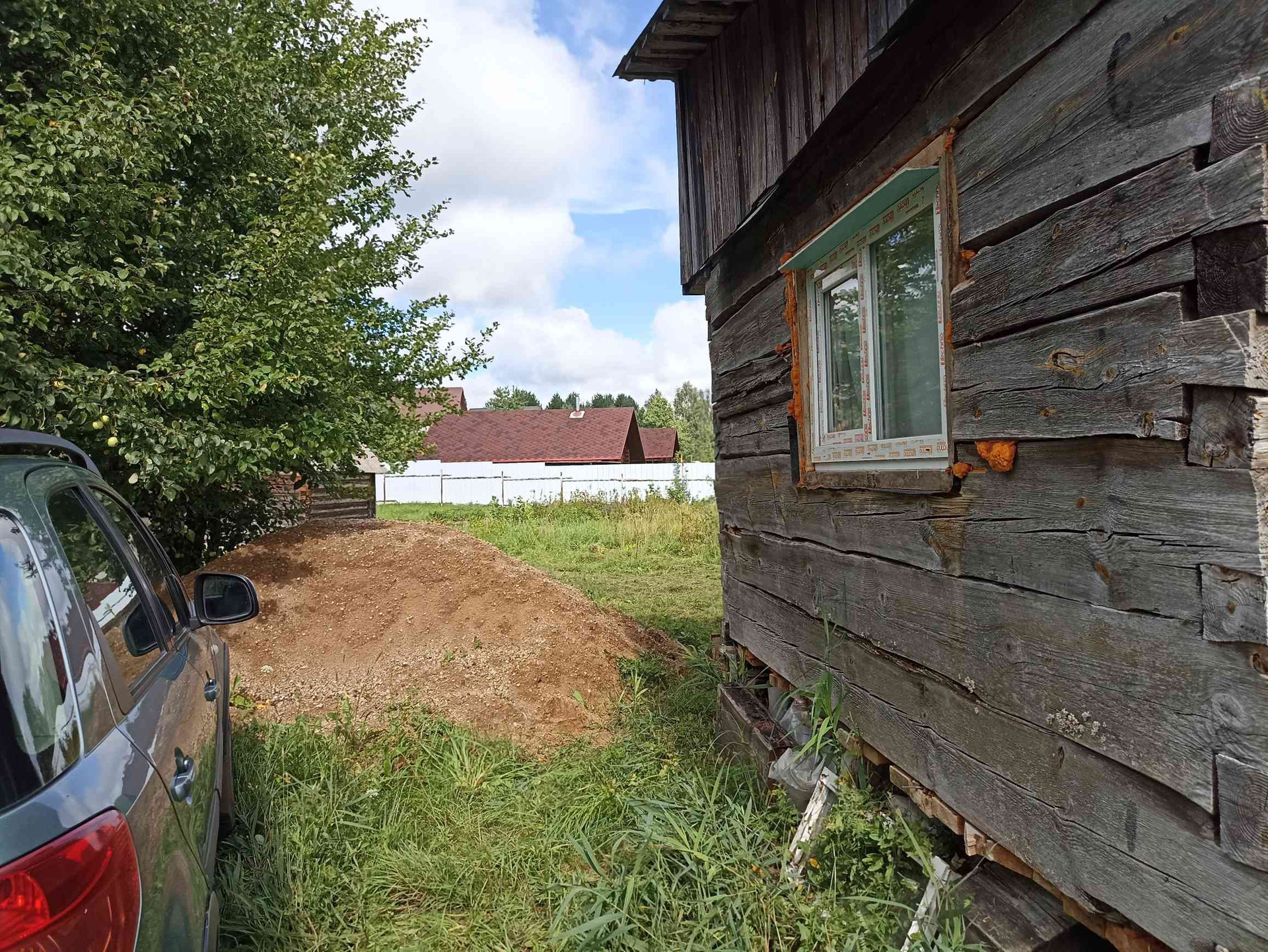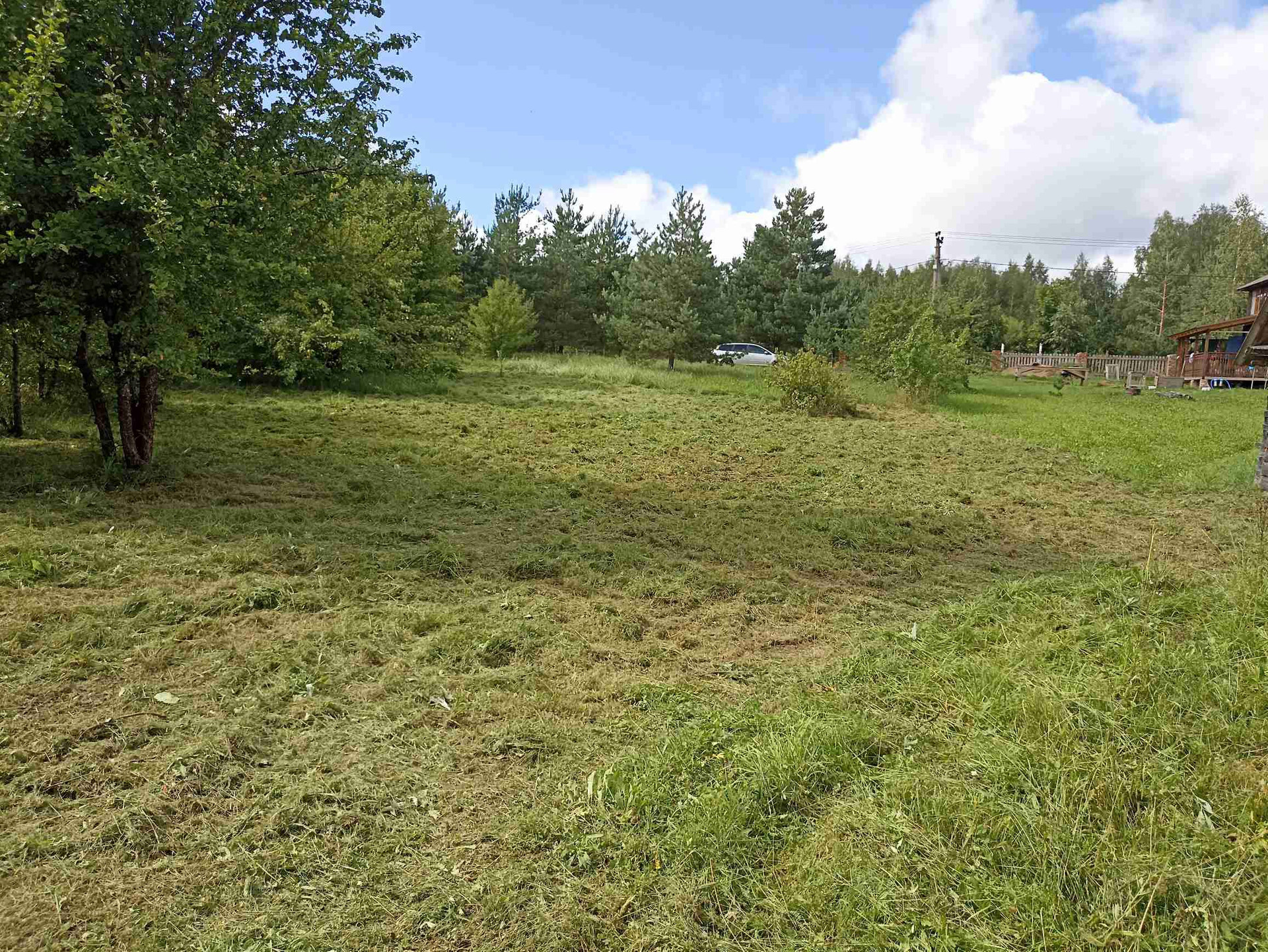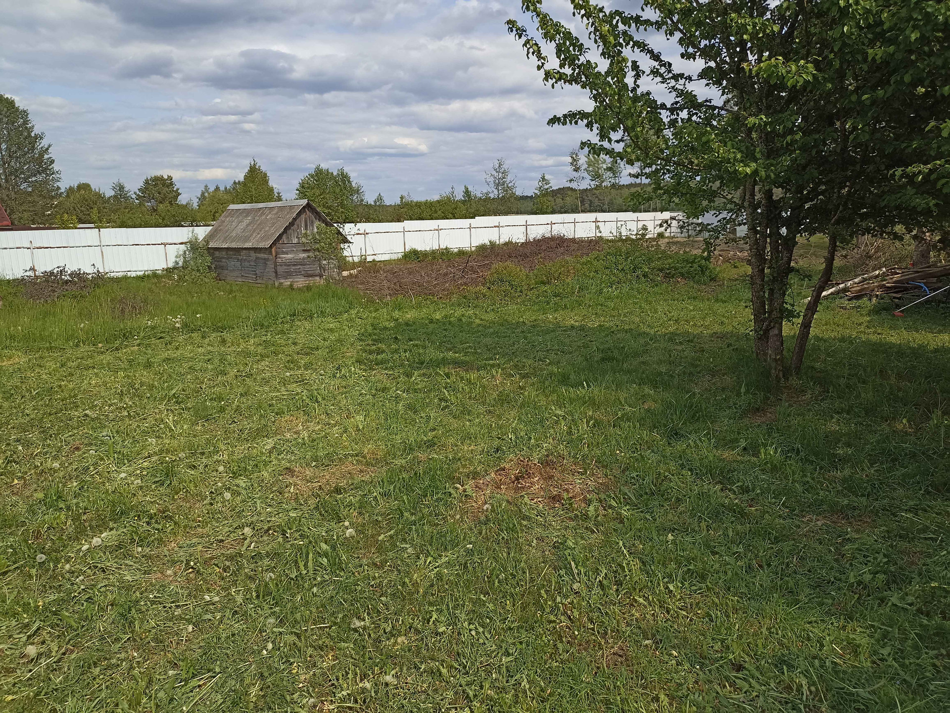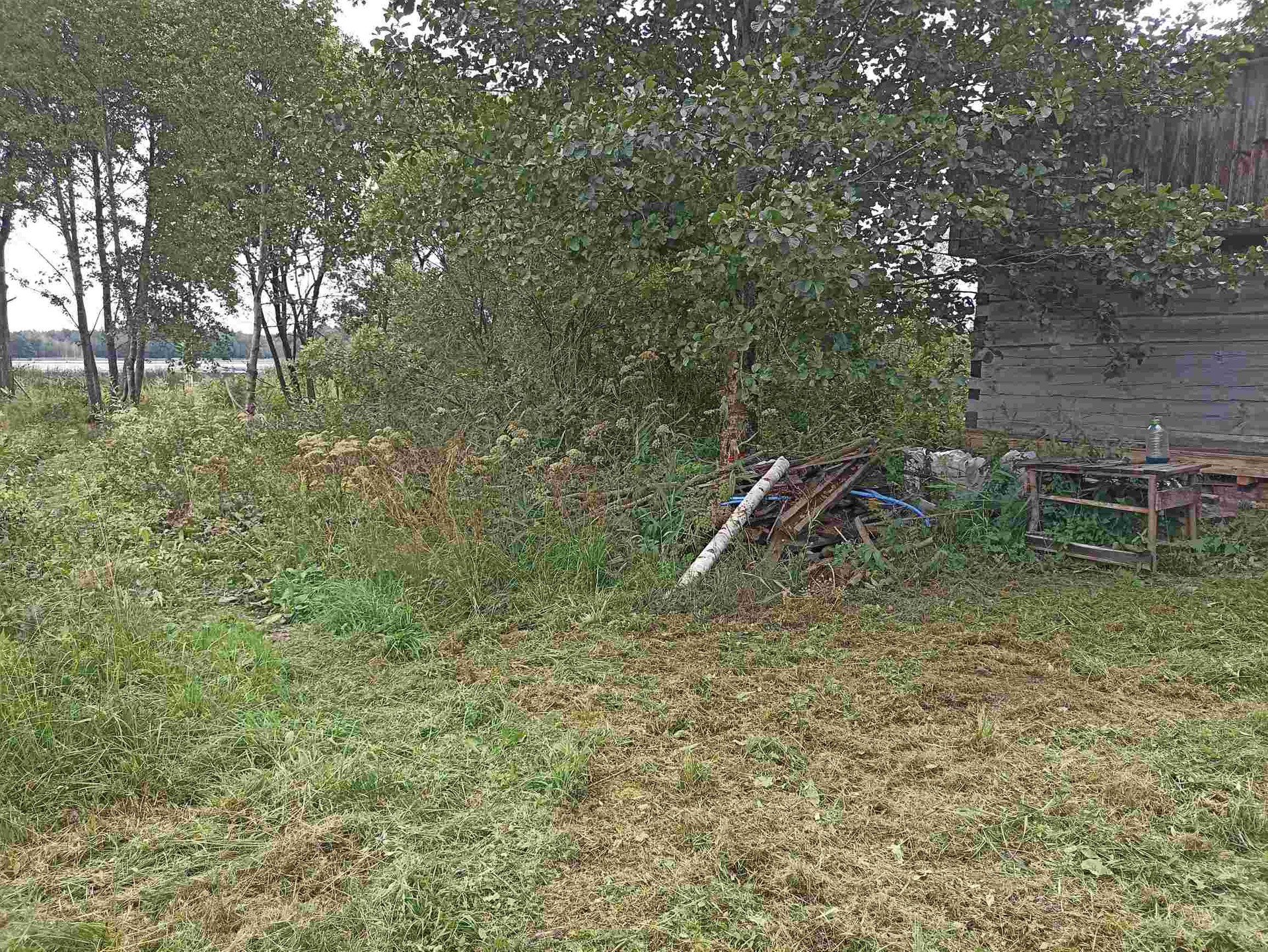 1.На участке хозпостройка 25 м кв, из сруба (не каркасник) размером 6,3*4,0 м. Внутри лодка. Металл дверь (два замка), ПВХ окно (с москитной, новое), пол 50 мм по лагам 150 мм. Для декоративной обшивки доска на обрешетку завезена. Можно оперативно строить дом - есть где разместить материал, а также местные специалисты в Опухликах, срубят и поставят сруб дома.