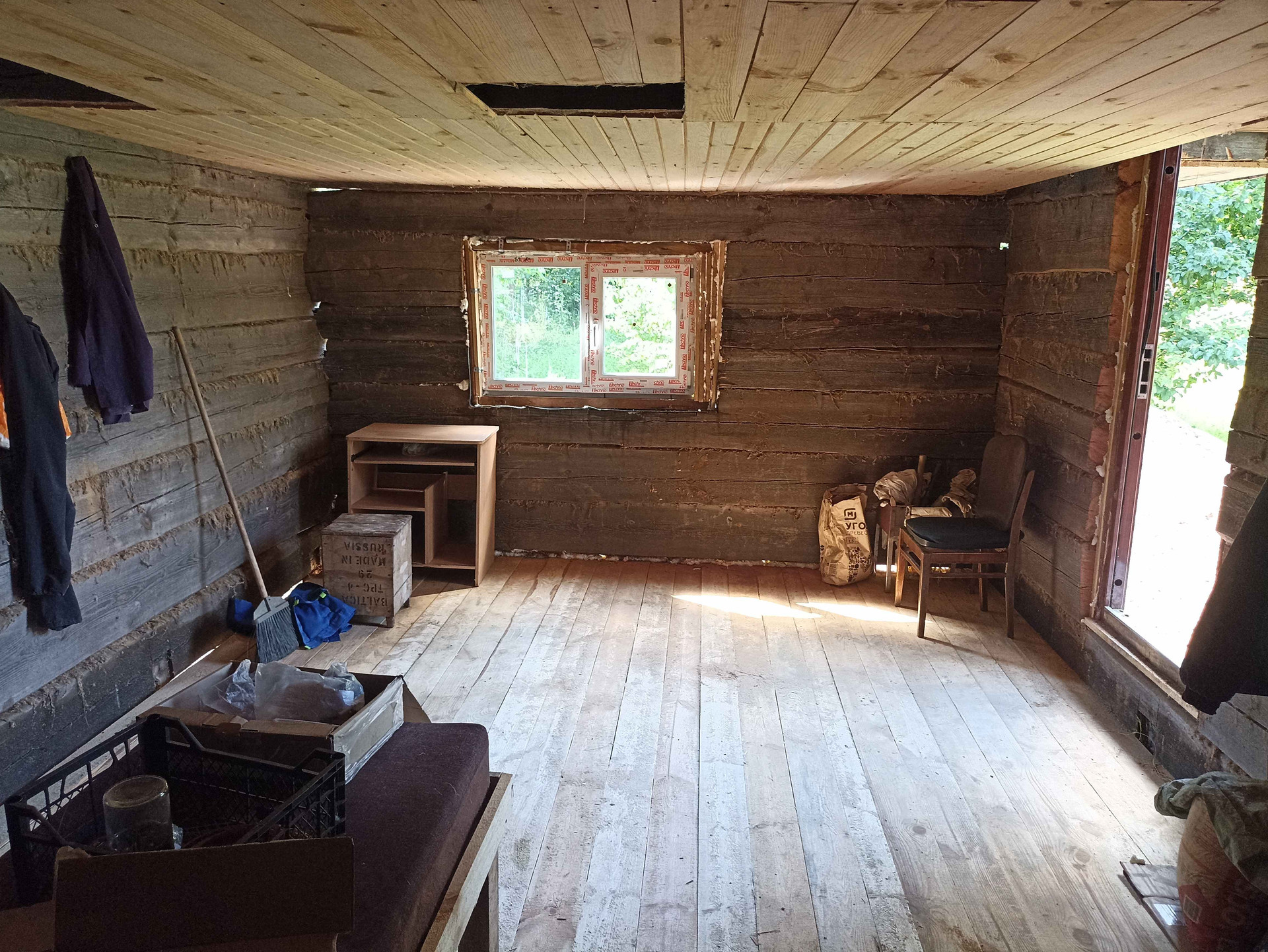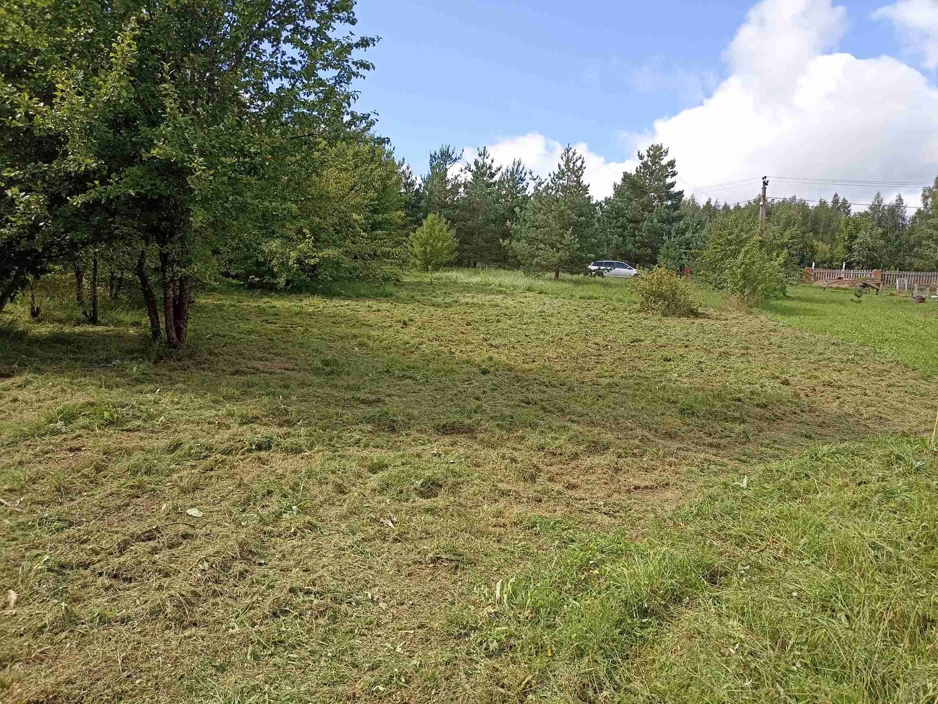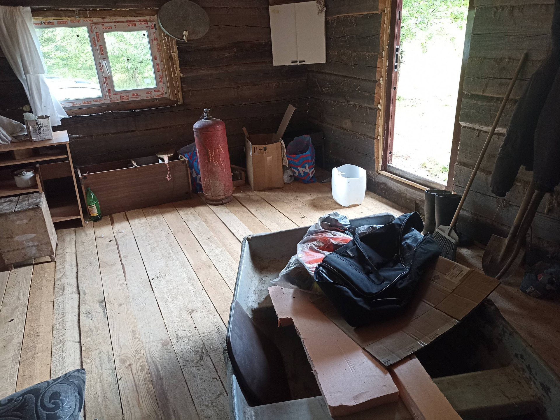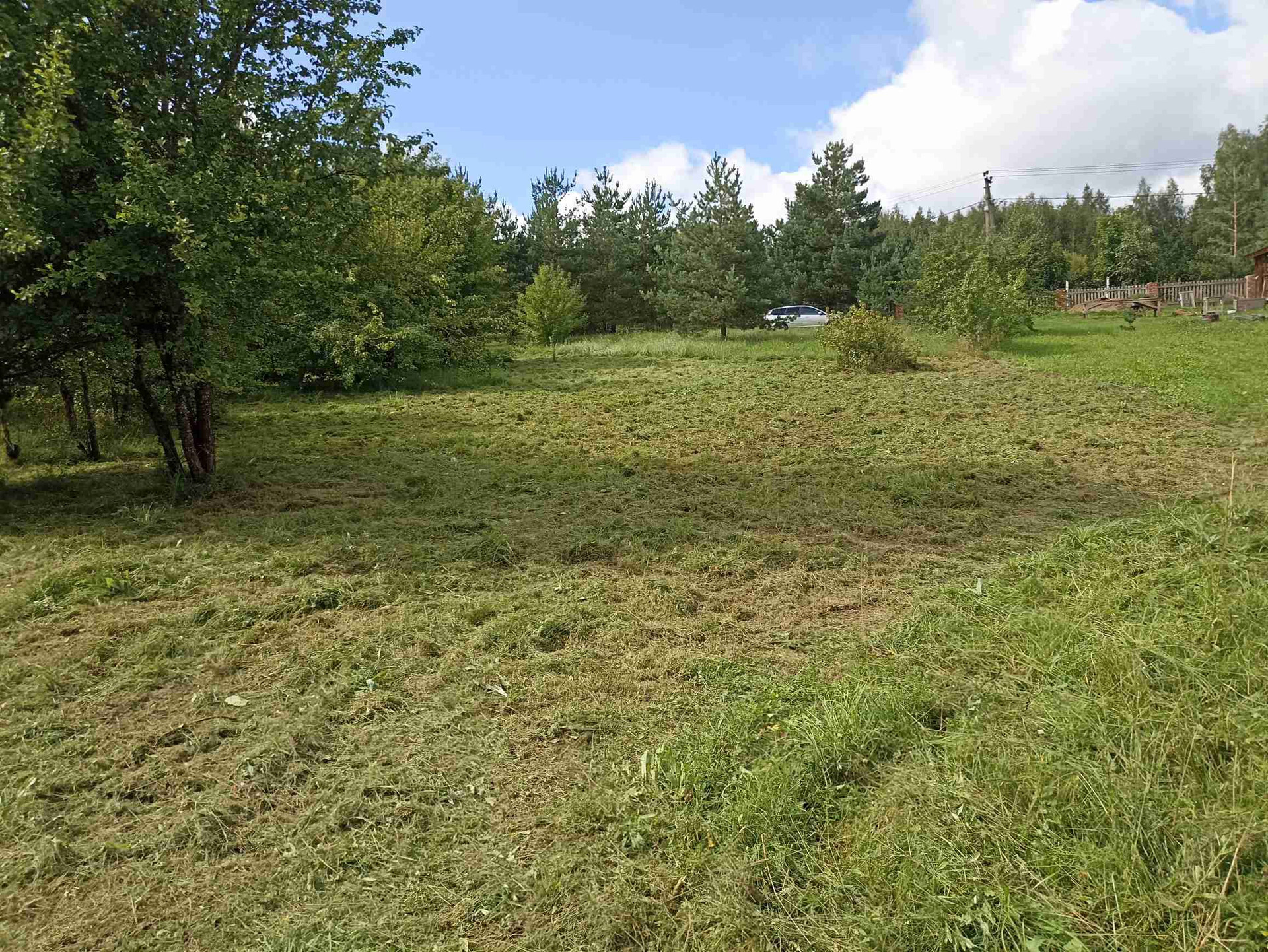 1.На участке хозпостройка 25 м кв, из сруба (не каркасник) размером 6,3*4,0 м. Внутри лодка. Металл дверь (два замка), ПВХ окно (с москитной, новое), пол 50 мм по лагам 150 мм. Для декоративной обшивки доска на обрешетку завезена. Можно оперативно строить дом - есть где разместить материал, а также местные специалисты в Опухликах, срубят и поставят сруб дома.