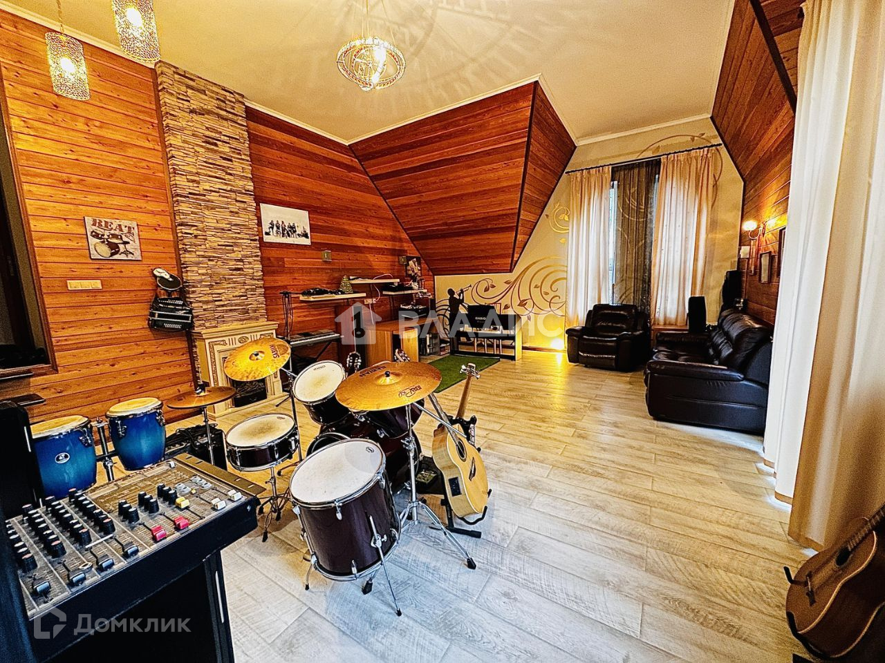 - просторная гостиная с камином;