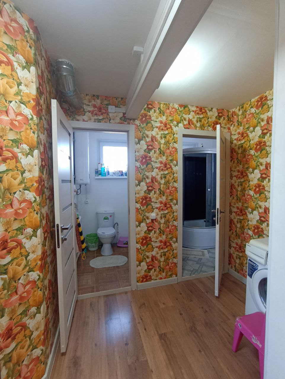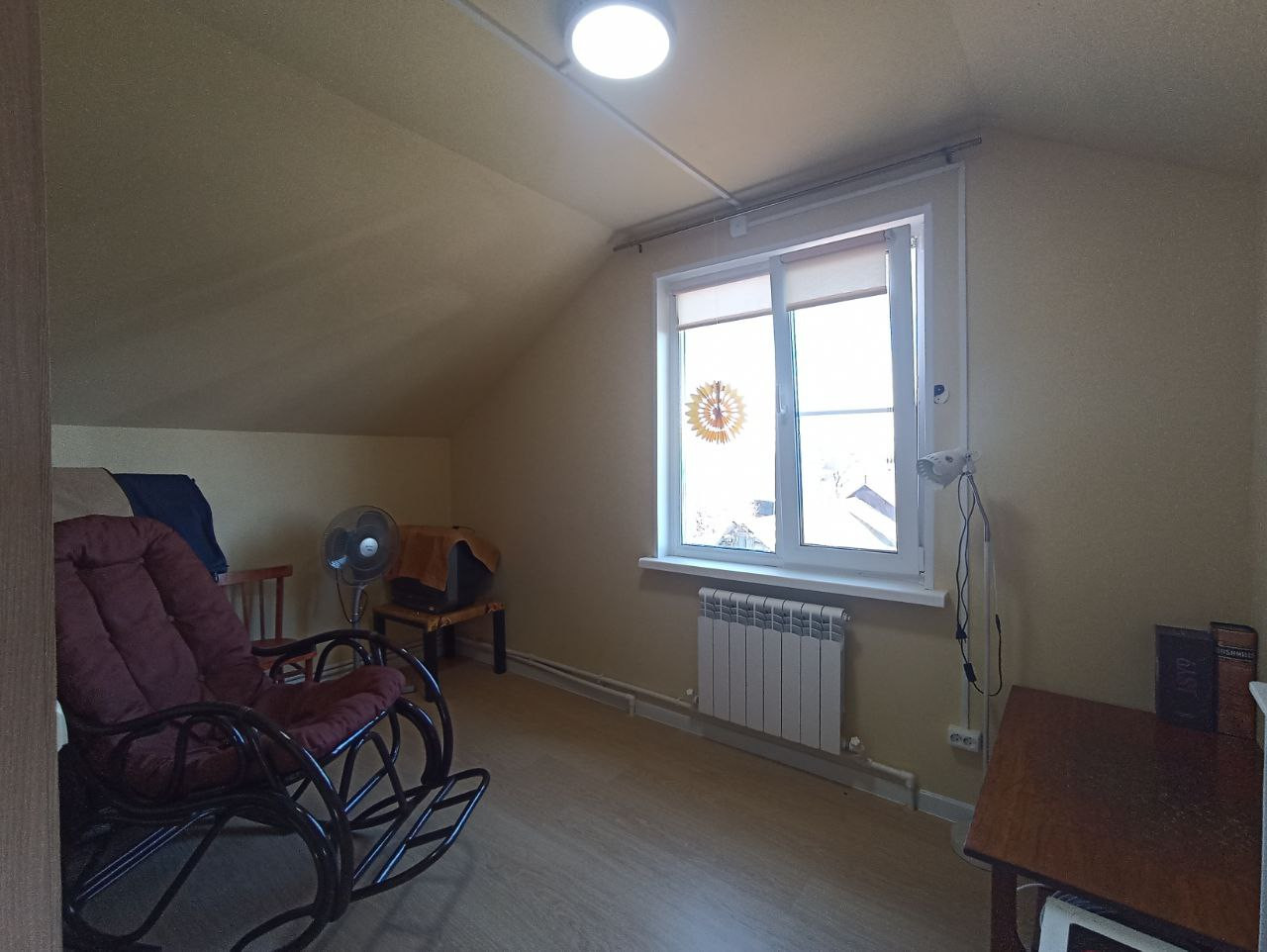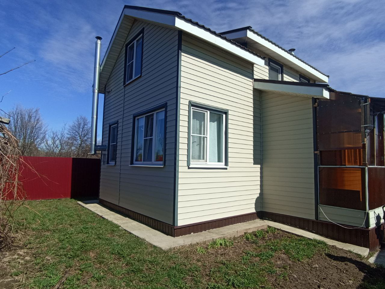 Строили для себя по проекту (материал - экопан), все удобства предусмотрены. Есть вода, газ, электричество, канализация (выгребная яма). Дома тепло и комфортно. На первом этаже раздельный санузел, кухня - гостиная, прихожая, котельная, на втором этаже - две спальни.