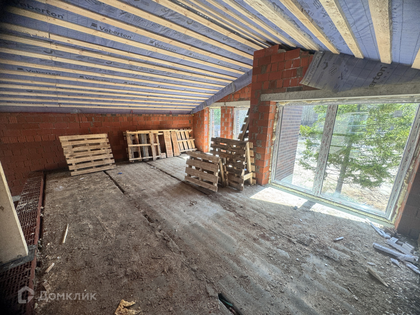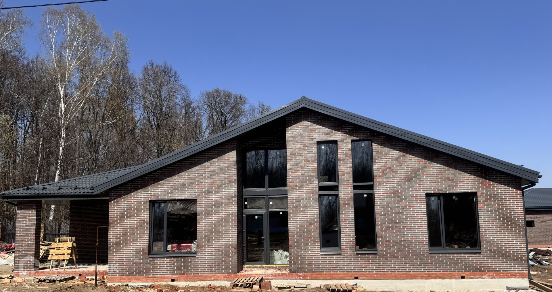 Черновая отделка, красный кирпич, железобетонные плиты перекрытия, качественные стеклопакеты, внешняя отделка дома - баварская кладка.