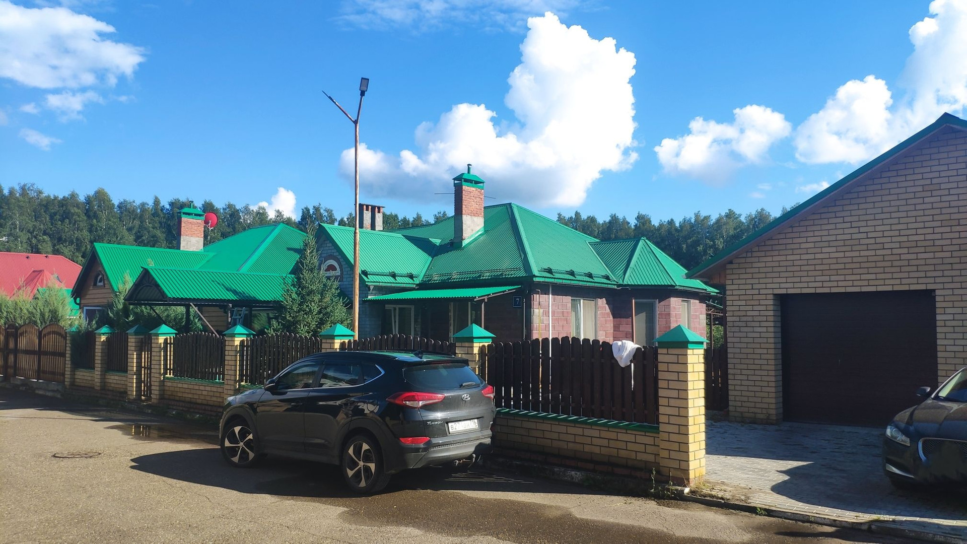 Территория поселка с видеонаблюдением и круглосуточной охраной, заезд через шлагбаум.