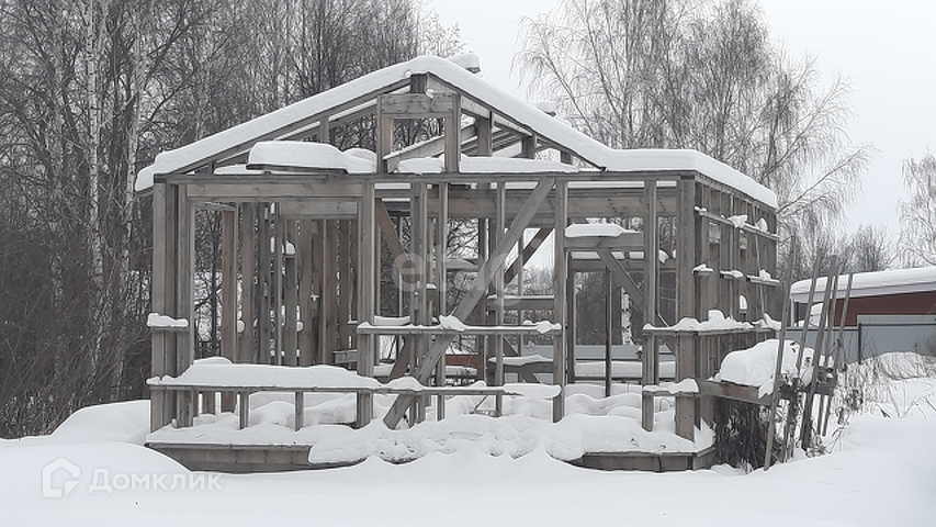 На участке свайный фундамент будущего дома 8х6, возведен каркас, пробурена скважина 73м глубиной, газ до участка. Присвоен почтовый адрес. Подключено электричество. Получен ГПЗУ.