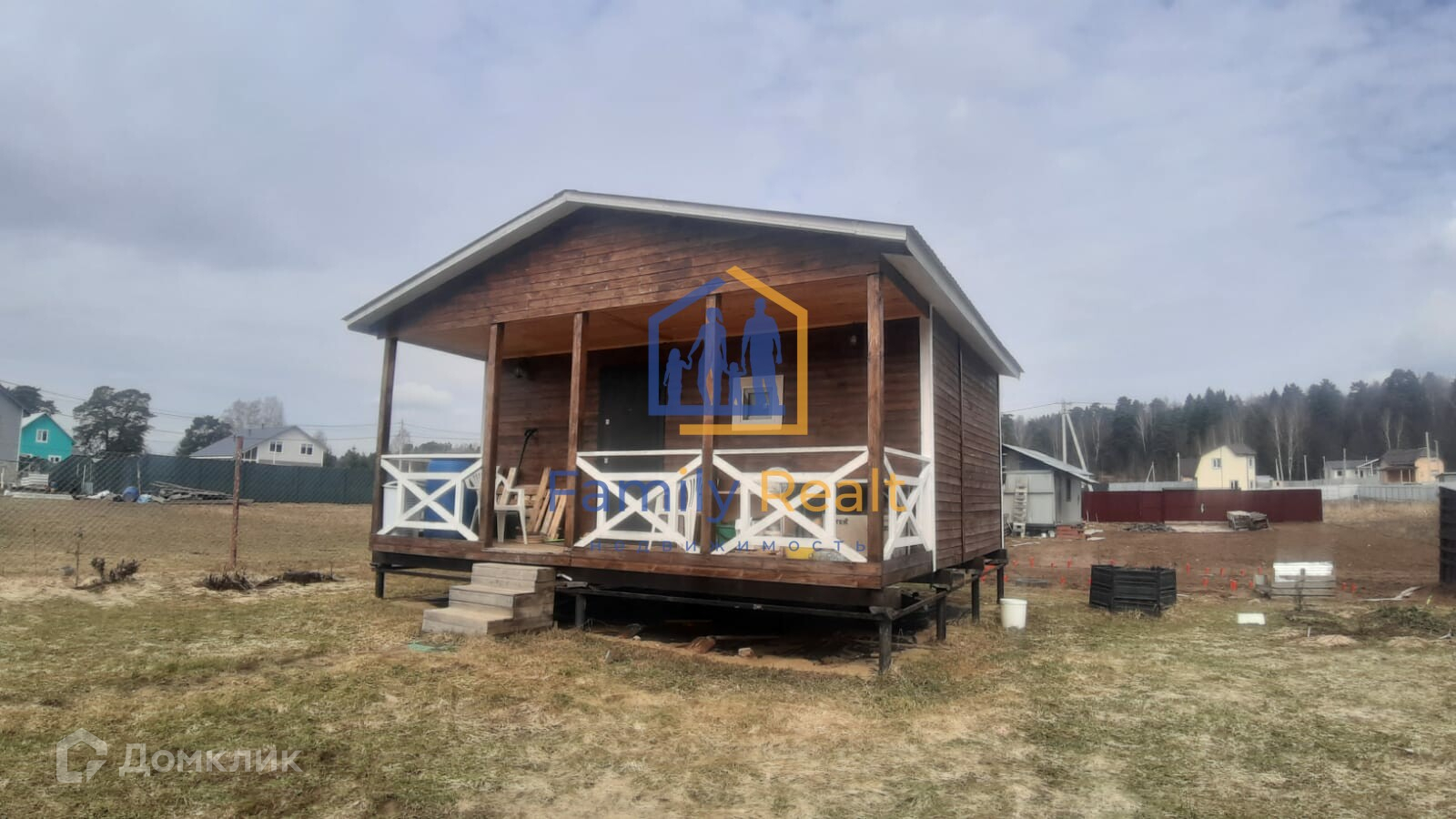 Участок огорожен, выровнен и готов к строительству основного дома.