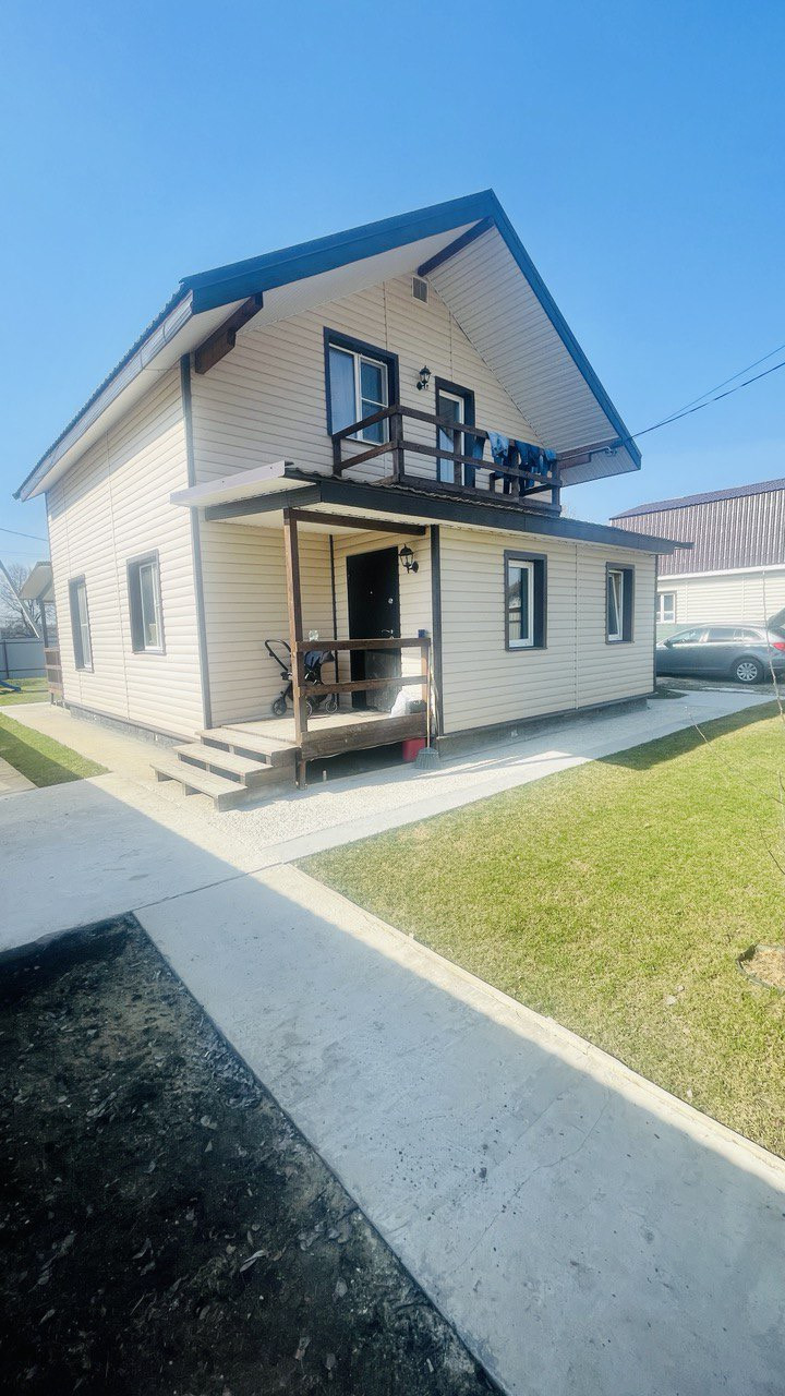 Продаётся уютный жилой дом, общей площадью 132,3 кв.м. Участок: 7,1 сотка правильной формы, Категория земли: земли населённых пунктов. Виды разрешенного использования: для индивидуального жилищного строительства. Характеристики дома: 2 этажа, комнаты 4, санузла 2, небольшая веранда, балкон. Коммуникации: газ по границе, вода-скважина, электричество, канализация-переливная система. Инфраструктура: в 5 минутах пешком от дома магазин, аптека, озон, вб., парикмахерская, почта, церковь, речка, школьный автобус привозит и увозит. Собственник: 1 взрослый. Никто не прописан. Свободная продажа. Полная стоимость в Договоре. Обременение СБЕР.  Мебель и техника все остаётся. Все интересующие вопросы по телефону.
