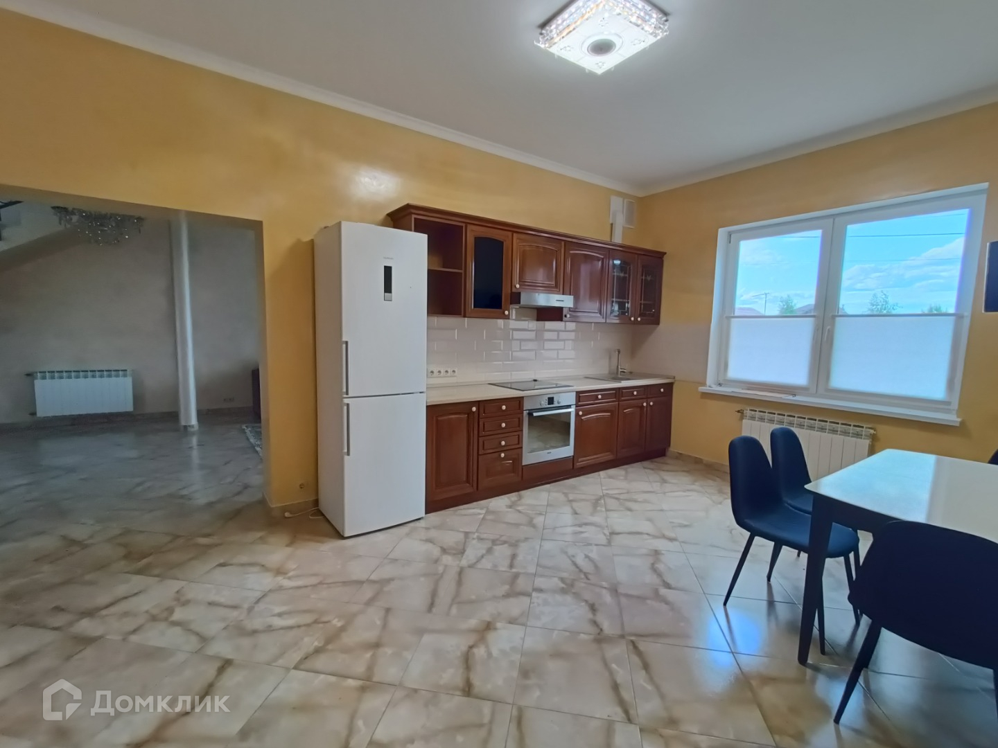 Прихожая, холл, котельная, кухня-столовая со встроенной техникой, электрическая варочная панель с духовым шкафом, просторная гостиная, совмещённая ванна с туалетом.