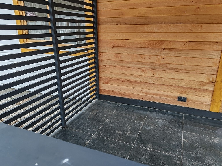 — На участке отсыпано парковочное место и отмостка вокруг дома; откатные ворота.