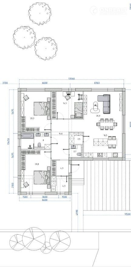 1-этажный дом, 121.4 м2, на продажу в деревне Орёл, Радужная улица
