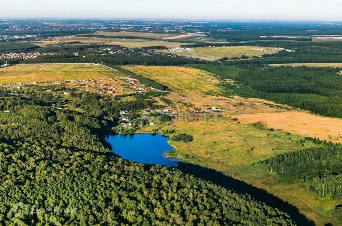 В шаговой доступности от участка озеро с песчаным пляжем и лесом.