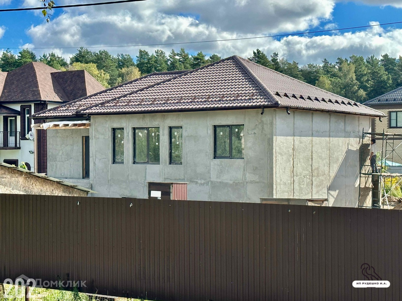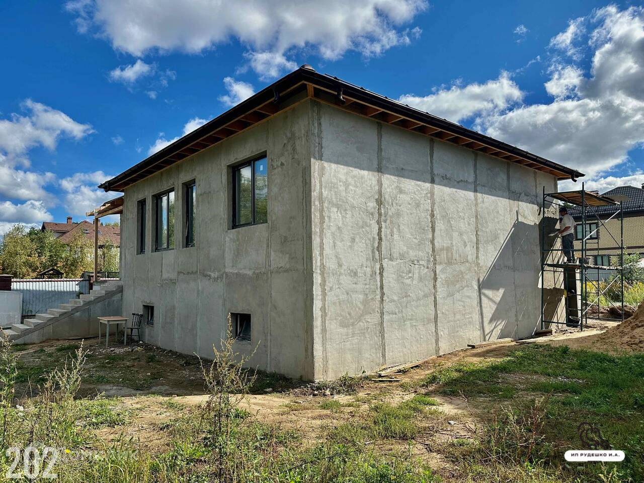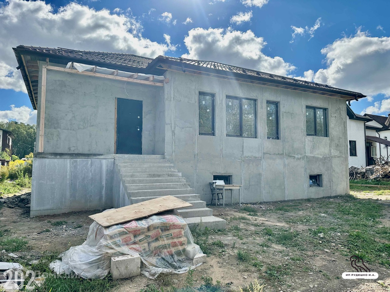 Коттедж (дом) 222,2 кв.м. на участке 8 соток для ПМЖ в пос. Орловка го Лосино-Петровский Щелковское, Горьковское шоссе 22 км от МКАД. Дом одноэтажный с цокольным этажом 2023 года постройки. Толщина стен более 400 мм. Состоит из двух слоев газобетонных блоков: BONOLIT марки D-500 толщиной 300 мм, снаружи марки D-200 толщиной 100 мм. Отделка декоративной штукатурской "под короед". Армированный пояс с утеплением.  Межэтажное перекрытие армированная железобетонная плита. Окна пластиковые двухкамерные стеклопакеты с ламинацией. Крыша вальмовая из матовой металлочерепицы. Снегозадержатели и водосточная система в цвет кровли. Утепление потолка 200 мм. Цокольный этаж утеплен пеноплексом, выполена гидроизоляция. Лестничный марш для входа в дом железобетонный. Теплый водяной пол Рехау. Газовый котел в процессе подключения, входит в стоимость дома. Установлен электрокотел Ferroli 12 кВт и бойлер на 100 литров. По проекту три жилые комнаты 17, 17 и 16 кв.м. Просторная кухня-гостиная 27 кв.м. Ванная комната. Техническое помещение со вторым с/у. Прихожая. В цокольном этаже котельная 25 кв.м., два помещения 44 и 35 кв.м.. Возможно использовать для установки сауны, зоны отдыха, спортзала, бальярдной. Вода своя скважина. Электричество 15 кВт. Магистральный газ. Участок правильной прямоугольной формы. Размер участка 20х40 метров. Хорошее транспортное расположение. В Москву возможен проезд по Щелковскому и Горьковскому шоссе. Остановка автобусов у дома. Ж/д станция Осеевская в 15 минутах пешком. Орловский карьер в 500 метрах, купание, рыбалка... Вся необходимая инфраструктура в г. Лосино-Петровский. Соседи построились и проживают постоянно. Ипотека и материнский капитал возможны. Свободная продажа. Дом в стадии отделки. Постоянно ведутся строительные работы.