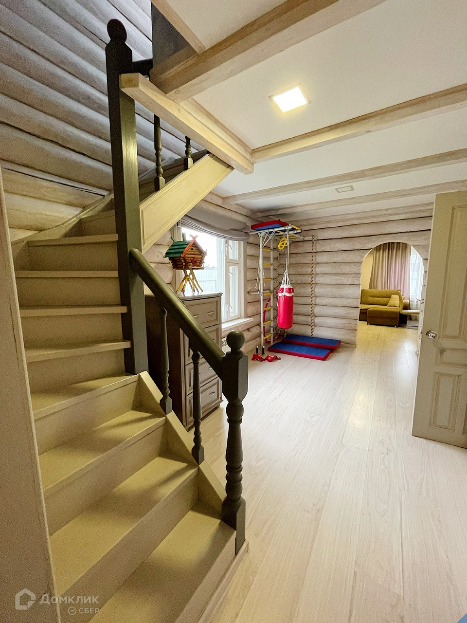 Сам дом построен из рубленного сруба ,ванна с видом во двор. Сауна и спортивный уголок.