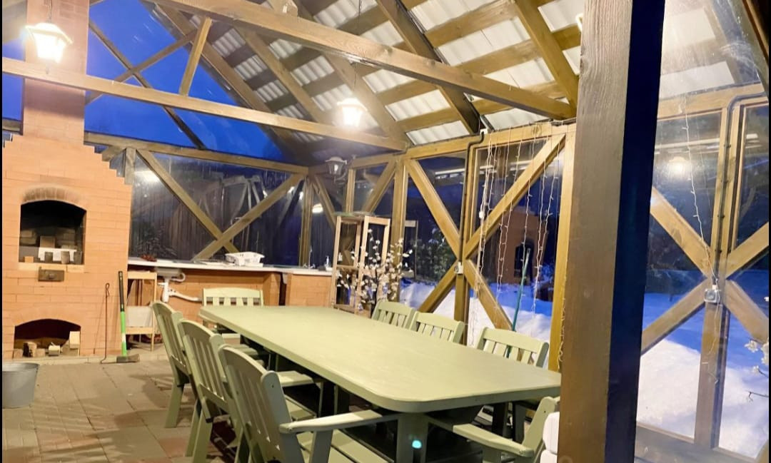 На участке имеется баня на дровах,глубокий пруд.Беседка,оборудованная барбекю,мангал,печь с казаном.