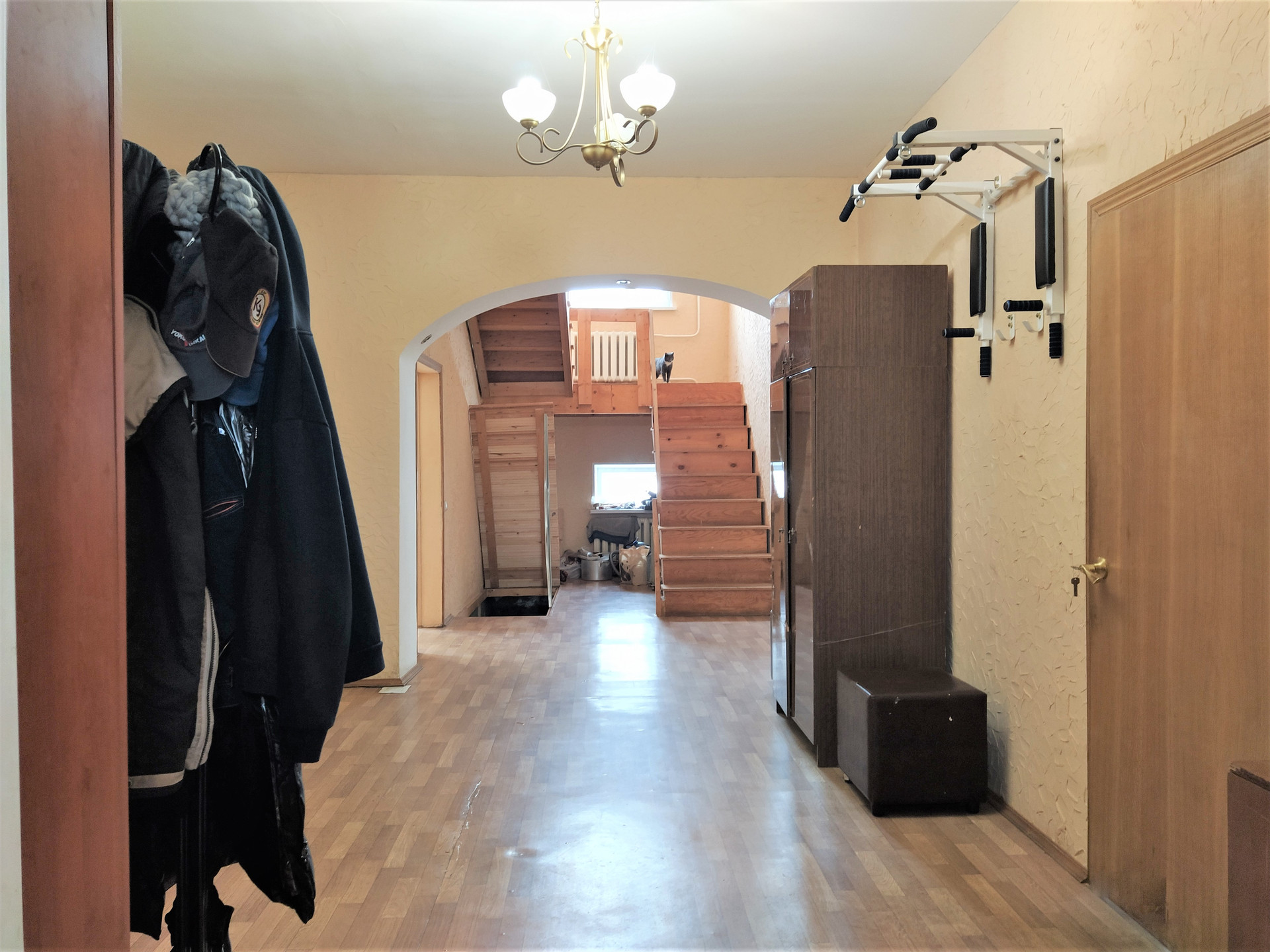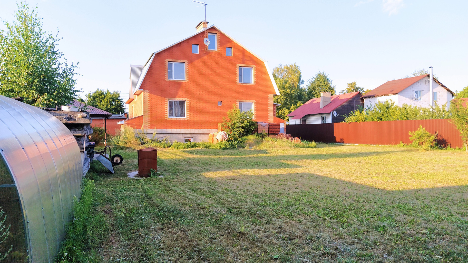 ...Дом в деревне в 25 км. от МКАД между Щелковским и Горьковским шоссе. Кирпичный капитальный общей площадью 331,5 кв.м. (цоколь-114,9 кв.м./1 этаж-117 кв.м./2 этаж-99,6 кв.м.), толщена стен 55 см (керамзитобетонные панели+ пенопласт+ кирпич), центральный газ, свет, вода (артезианская скважина), двойной септик по 6 колец. На первом этаже большой холл, кухня 30 кв.м., гостиная с камином 30 кв.м, спальня 16 кв.м. и раздельный санузел с ванной; на втором этаже 4 спальни и совмещенный санузел с душевой кабиной; цокольный этаж 6 комнат без ремонта. Участок ровный, прямоугольной формы, сухой (песчаная почва), огорожен со всех сторон с плодородными кустарниками и деревьями. На участке расположены: беседка, теплица, качели, кирпичный гараж 33,2 кв.м с ямой, светом и водопроводом.