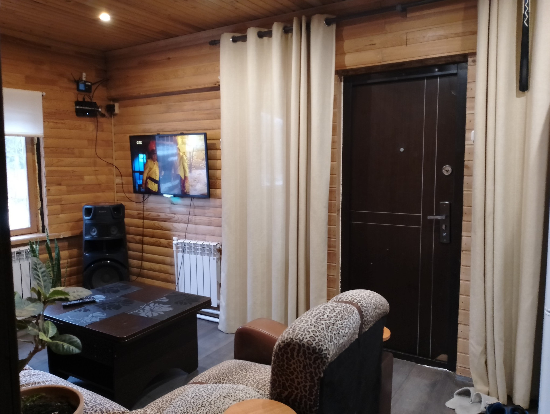 В кухне-гостиной: тёплый пол, печь.