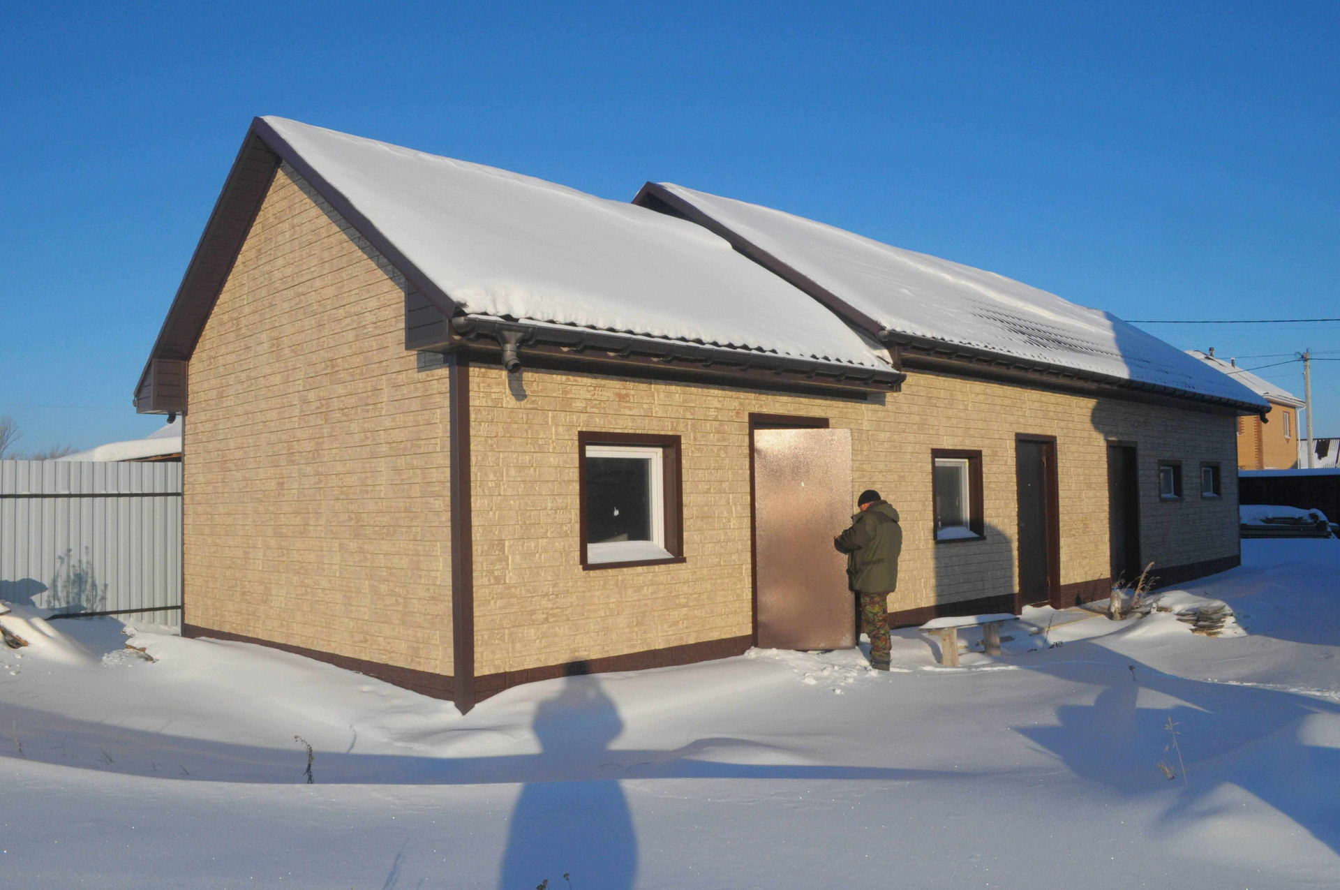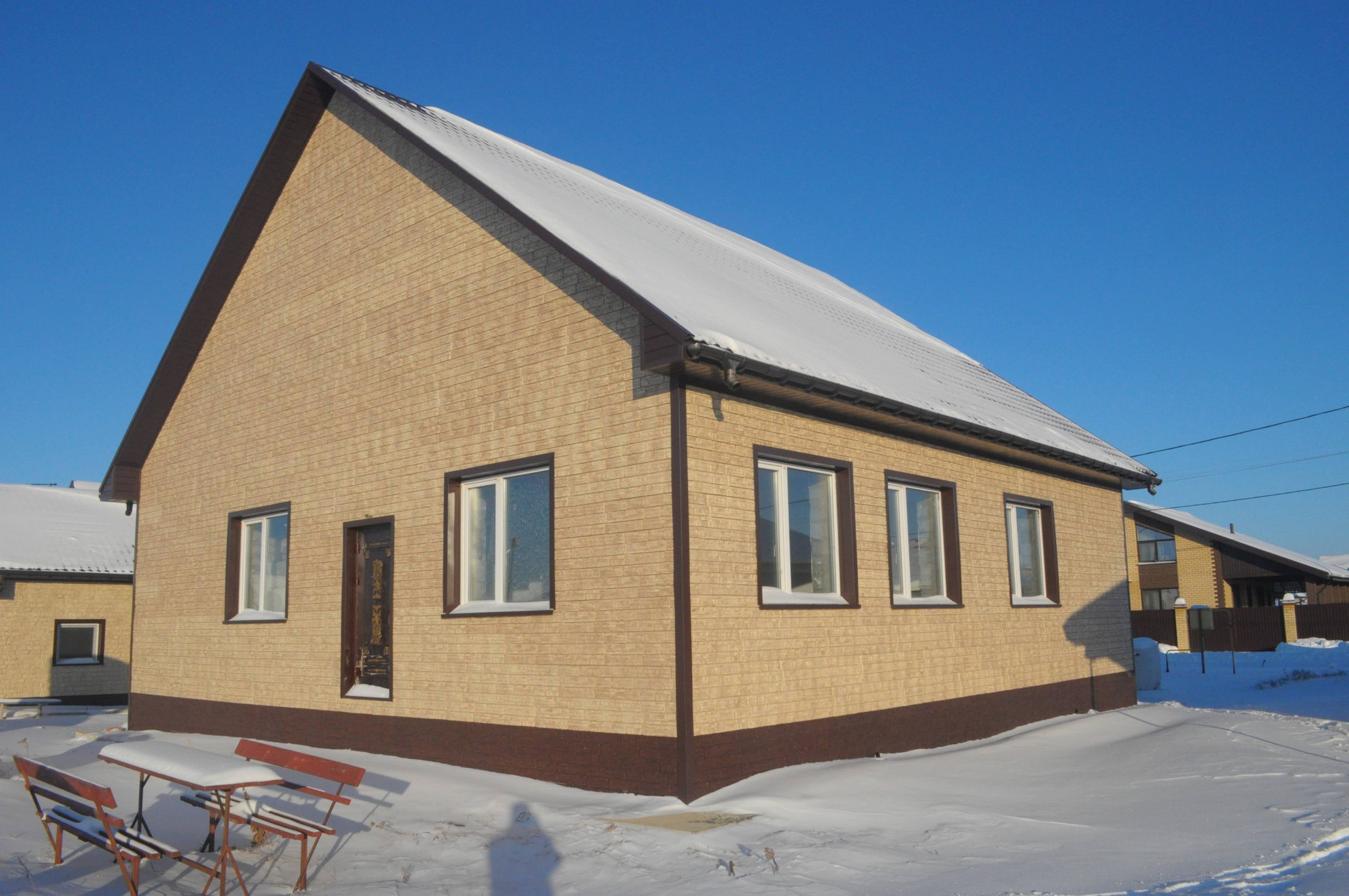 Дом газоблок, обшит сайдингом.