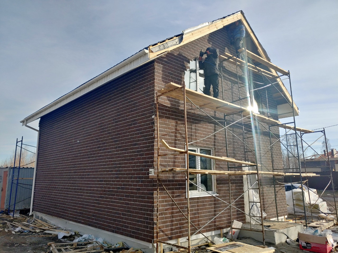 Дом общей площадью 120 кв.м. Конструктивные характеристики дома: стены теплоблок ; кровля металлочерепица, утепление минвата 200 мм ; фундамент бетонный свайно-ростверковый, пластиковые окна - 2х камерный стеклопакет, 5-ти камерный профиль, водосточная система, наружная отделка кирпич.