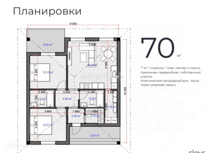 Общая площадь 70 м2
