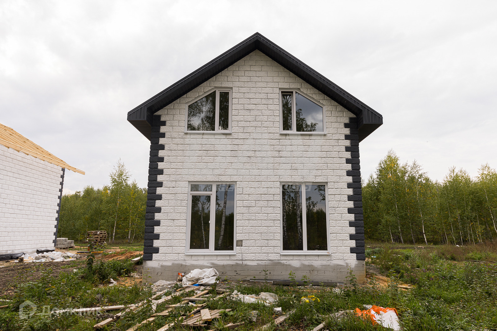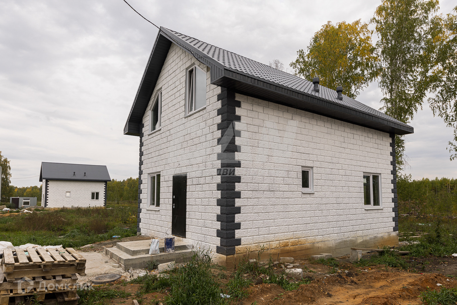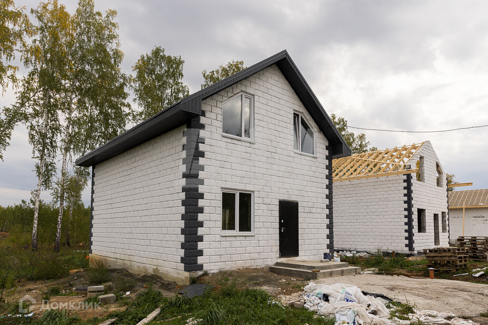 На первых 6 фото готовый дом, но продается, тот что строится на остальных фото.