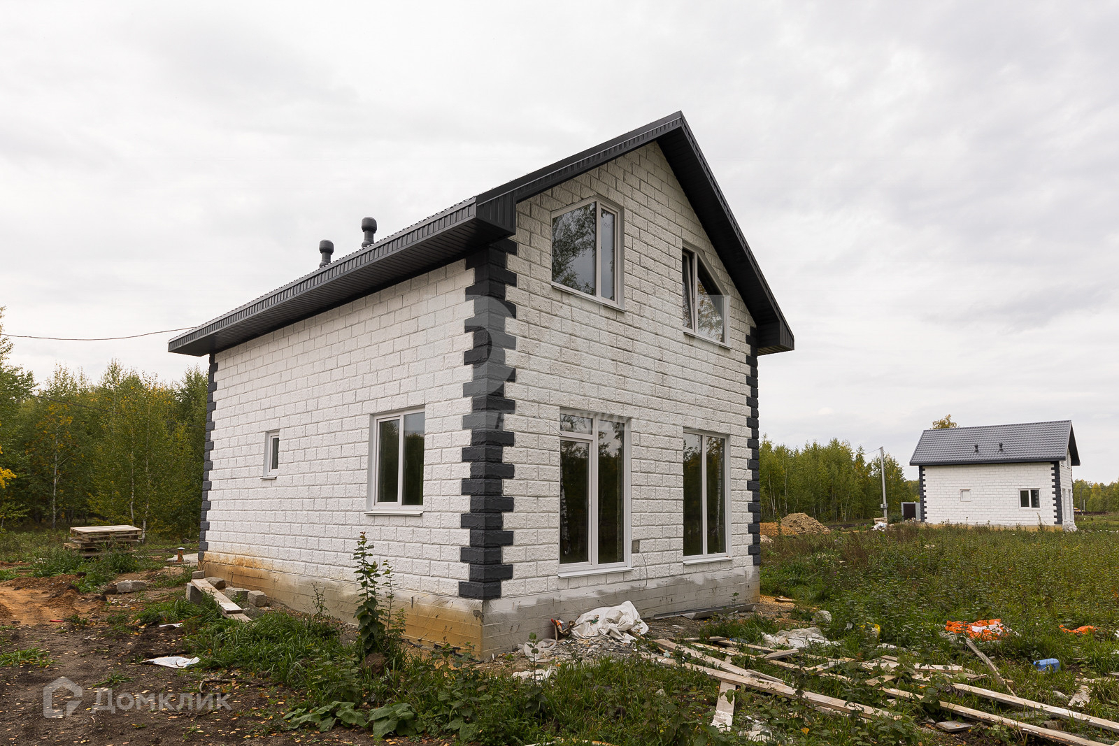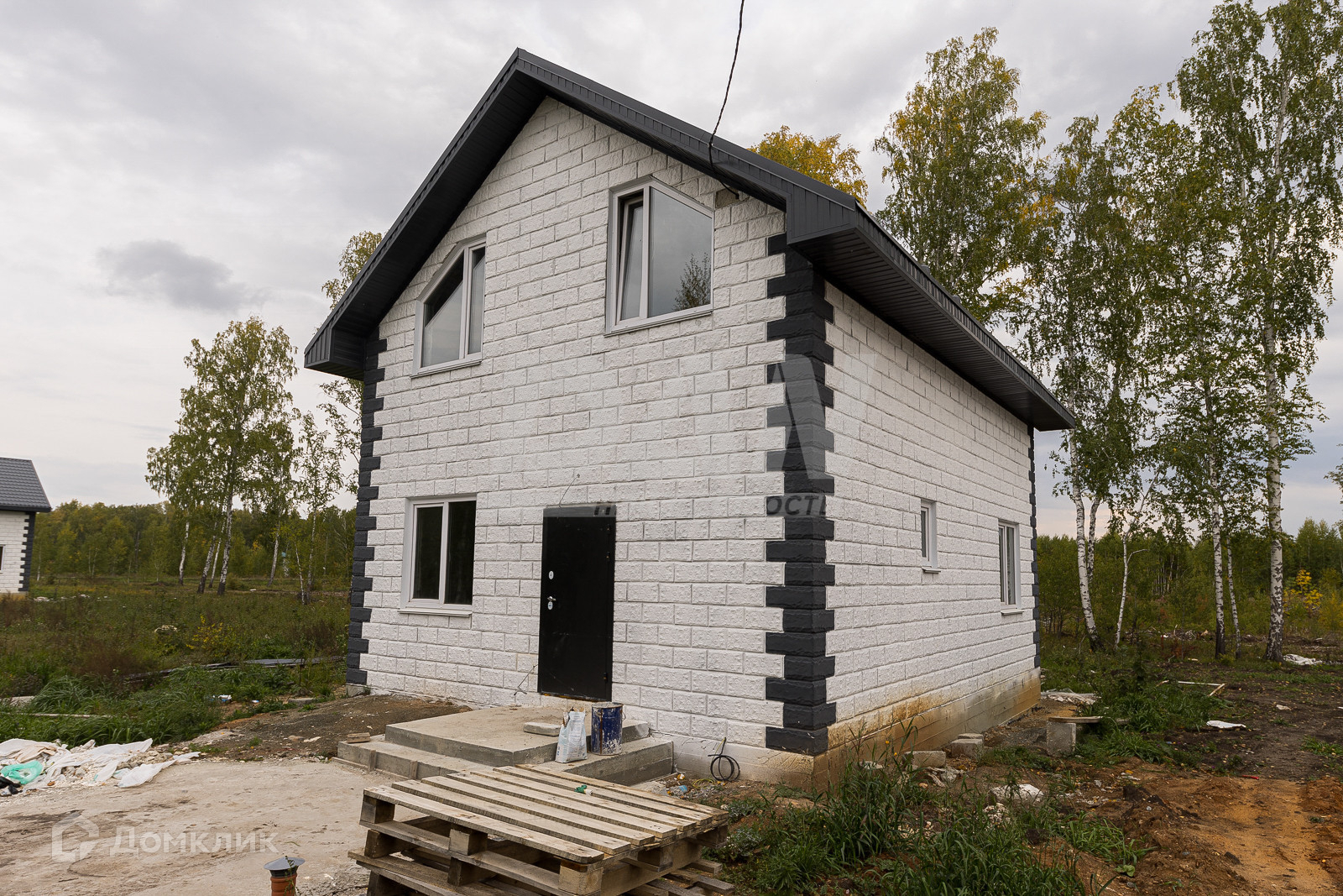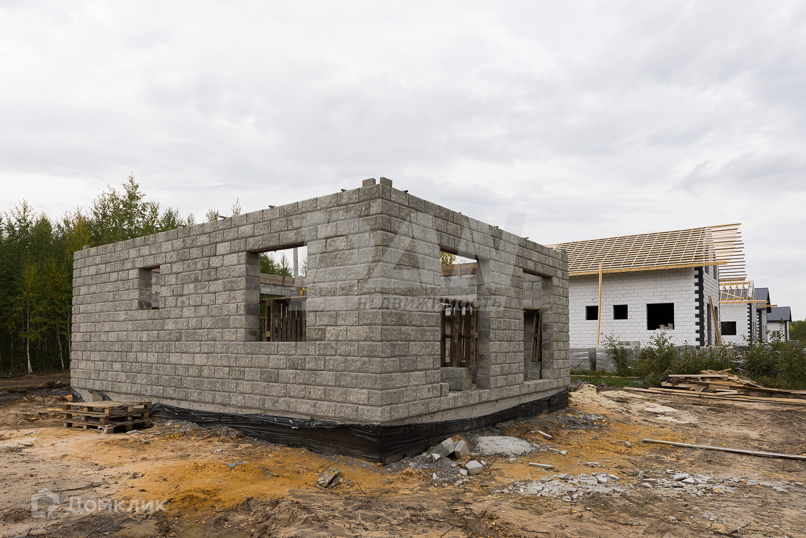 На первых 6 фото готовый дом, но продается, тот что строится на остальных фото.