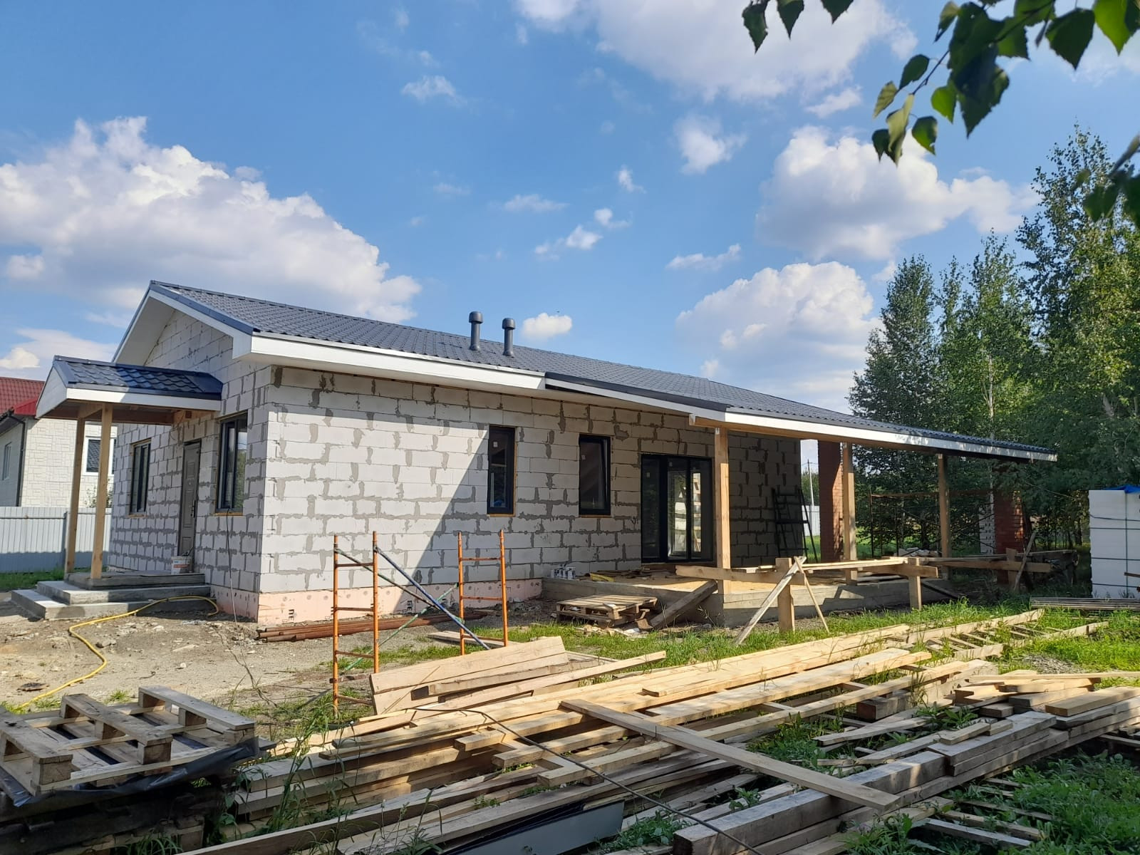 Новый дом, с предчистовой отделкой, пластиковые окна цвета графит, металлочерпица тоже цвета графит, скважина находиться под домом, что позволяет ей не промерзать в суровые морозы, канализация септик, отопление, теплые полы