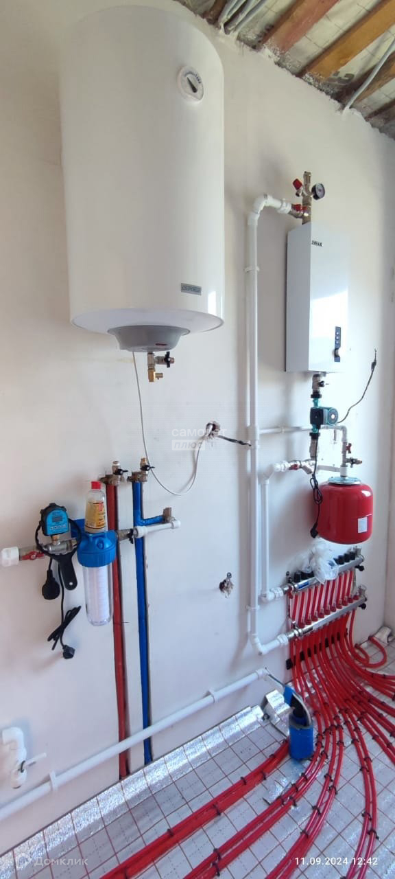 Котельная: котел электрический 9квт (12кВт в в домах от 81 м.кв.), бак расширительный для холодной воды 50л, водонагреватель 80л.