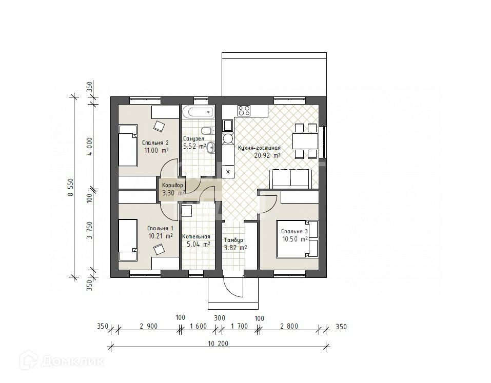 Общая площадь 70 м2