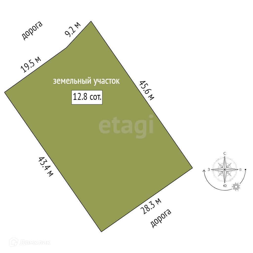 Площадь участка 12.8 сот.