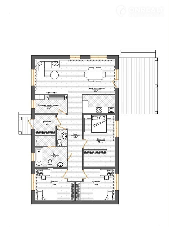 Общая площадь дома: 103 м²
