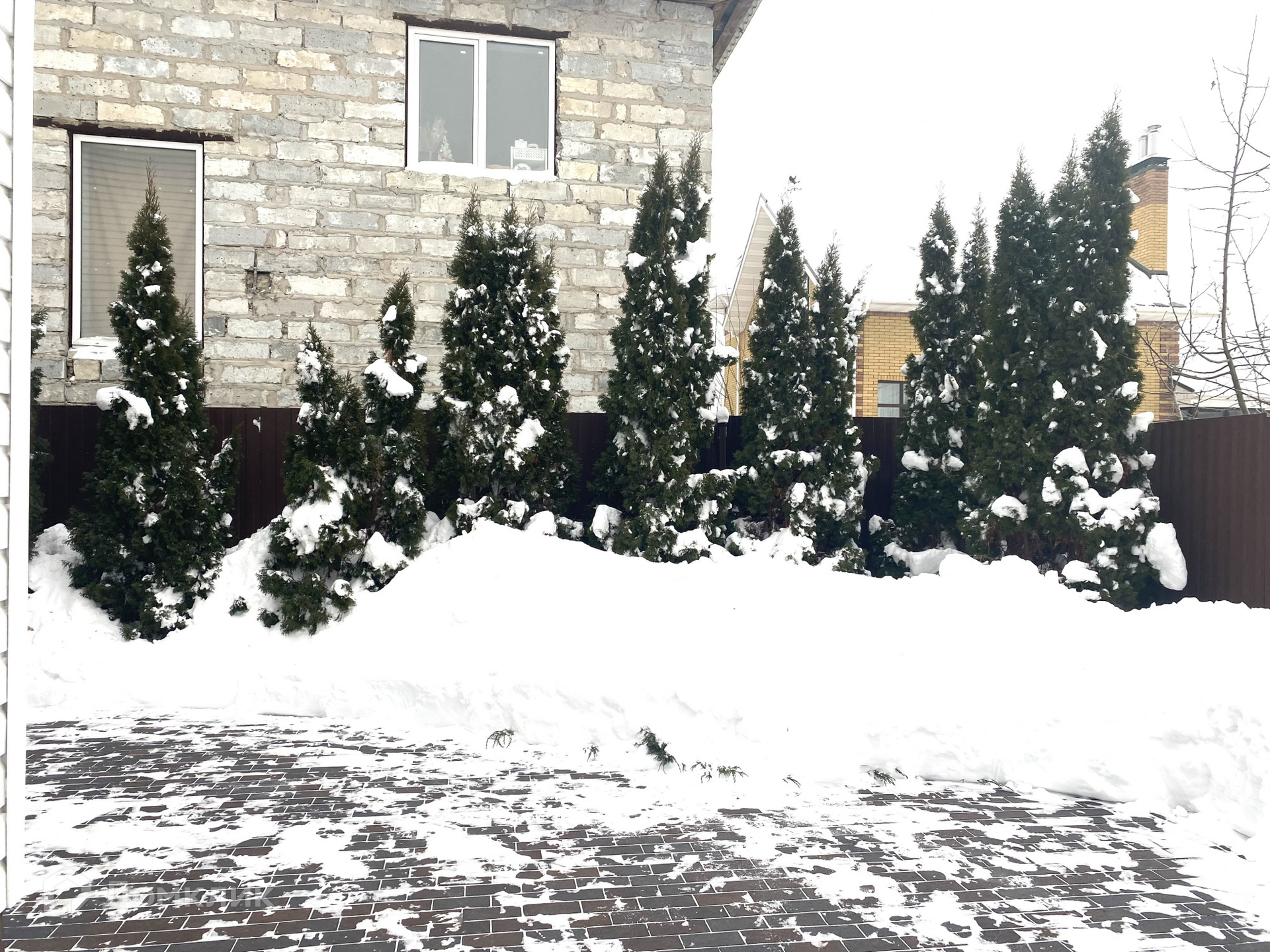 Отмостка и дорожки сделаны из немецкой клинкерной плитки. В плитку встроена подсветка .