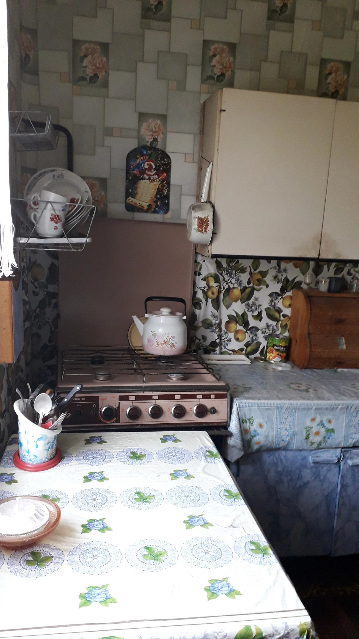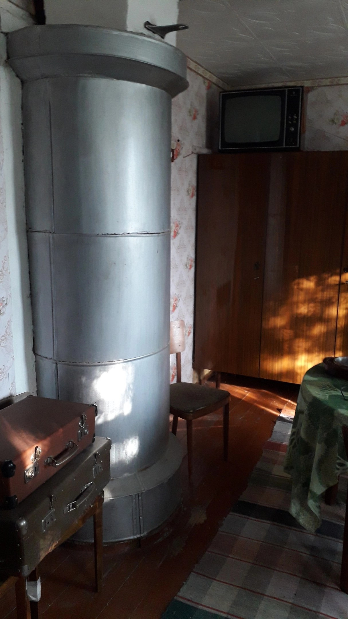 В квартире две светлых теплых комнаты,23.8+10.3 . В большой - два окна, выходящие в сад. В маленькой - окно на тихий двор. Удобная кухня, в которой есть вход в подвал, где все обустроено для хранения овощей и заготовок. В квартире две печи: русская печь на кухне в совершенно рабочем состоянии. Круглая печь в стене между комнатами отлично обогревает квартиру (новая, поставлена 2 года назад). Зимой  тепло, летом - приятная прохлада. На кухне  холодильник и газовая плита (работает от газового баллона). Освещение электрическое. Водоснабжение центральное. На просторной застекленной веранде - туалет, также есть кладовка.  Обустроен подвал с освещением. Частично остается мебель. При необходимости, мебель можно убрать полностью или дополнить для покупателя.